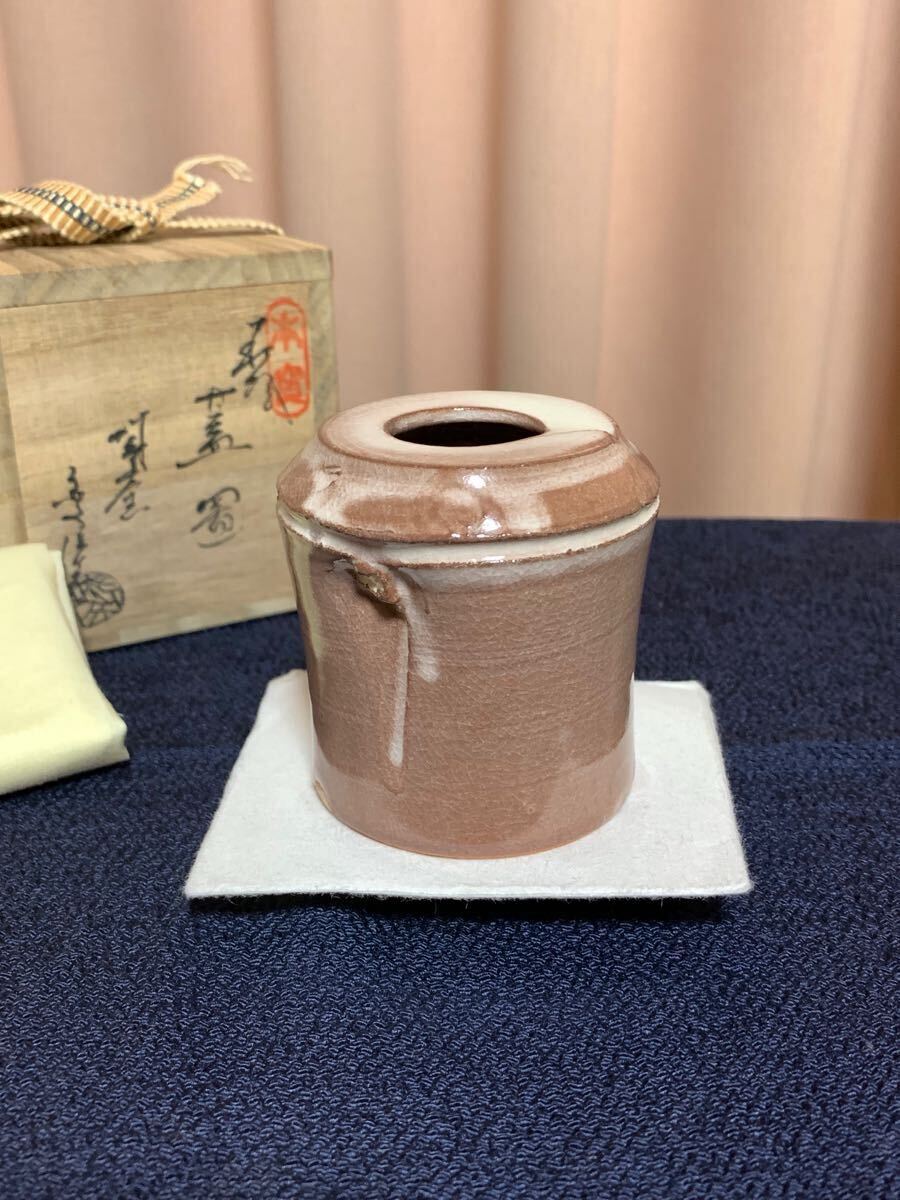 いつも溌剌とした バランスの良い作品を作る作家さんで、製作数も多いらしく 現在大変な活躍期にあるのだろうと感じます。個展作などとは別に、通常の作は香合ならば“糸巻” 蓋置ならば“竹”と ある程度種類を絞っての製作が主らしく、同じ型の品物の流通が多い様に見受けられます。求める側にすると 色合いの好みなど 選択の幅が広がる事を意味し、萩焼の場合はそれが特に有益だろうと考えられます。