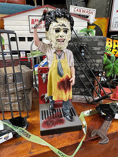 レザーフェイスの特徴をよく捉えて、いつものリアルテイストで再現しつつ、ボビングヘッドらしいディフォルメ感も絶妙な塩梅で表現してあるのよねー