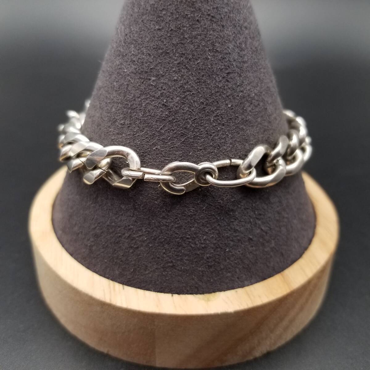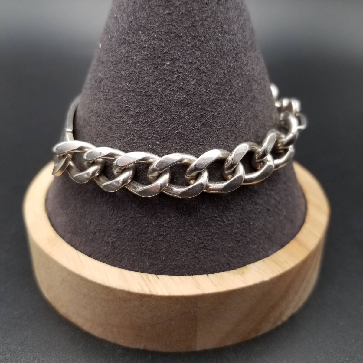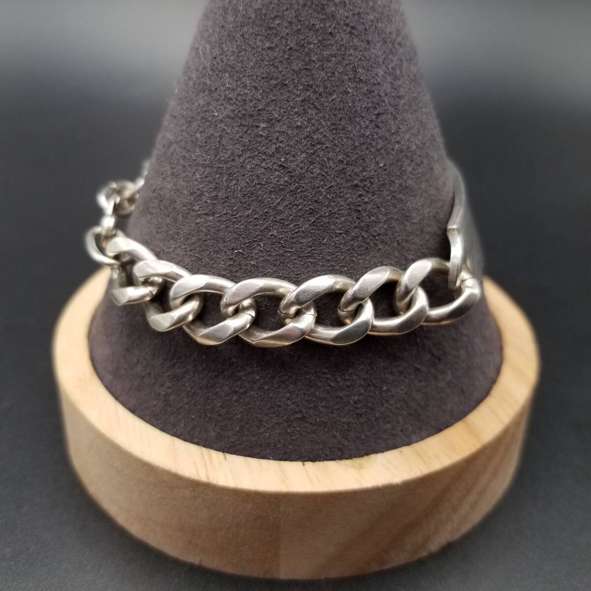 70's頃 LA MODE IDタグ 長方形プレート 喜平チェーン 925 シルバー ヴィンテージ ブレスレット 銀 重厚感 ネーム彫金 MICKEY R14-P