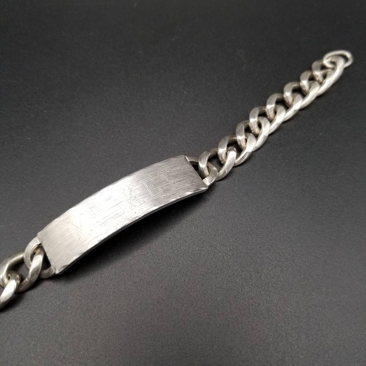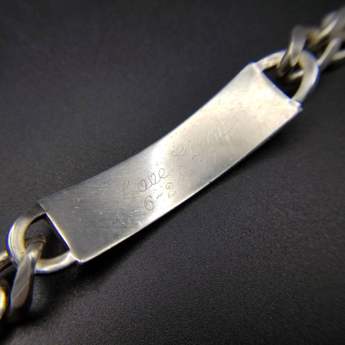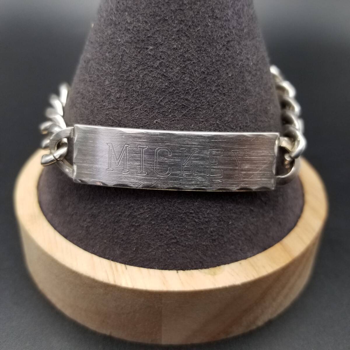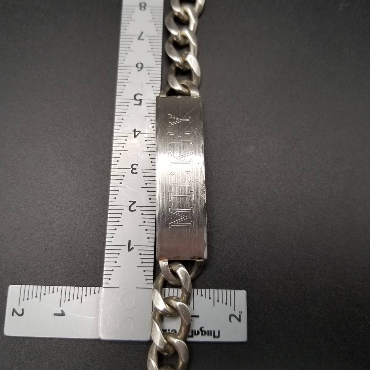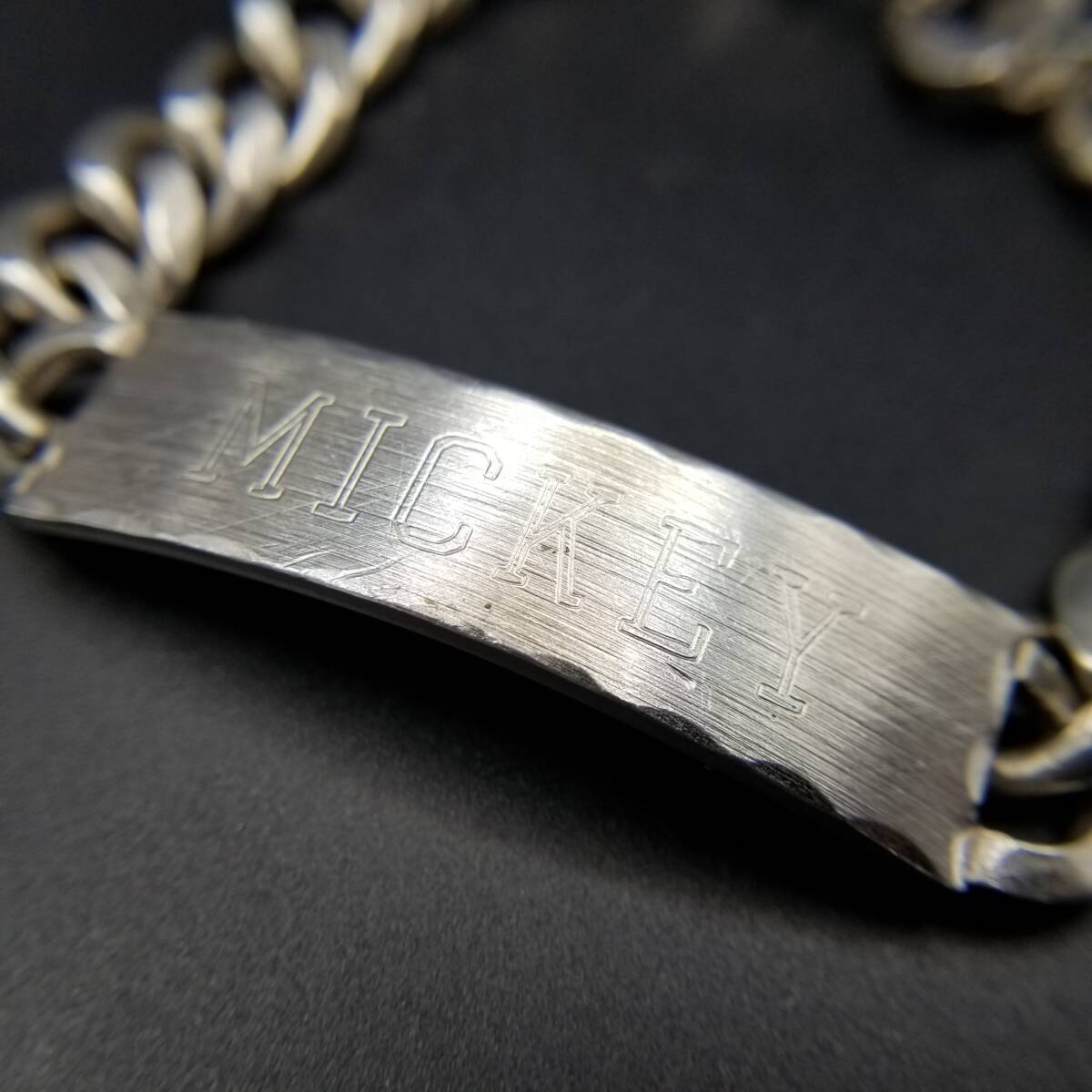 70's頃  LA MODE IDタグ 長方形プレート 喜平チェーン 925 シルバー ヴィンテージ ブレスレット 銀 重厚感 ネーム彫金 MICKEY R14-P