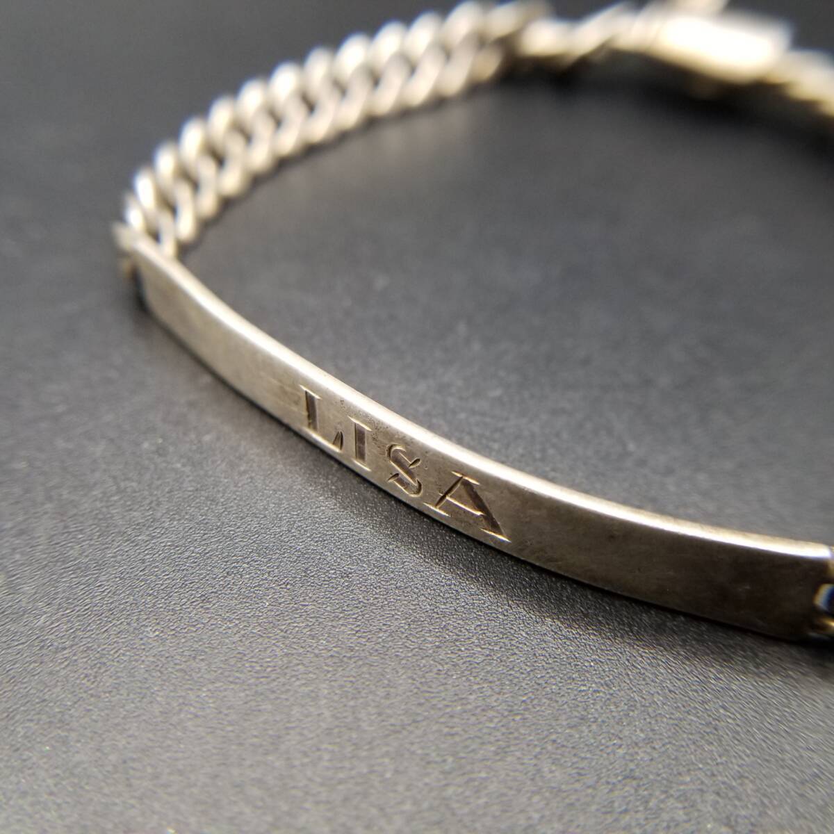 IDタグ 細幅 喜平チェーン リンク 925 シルバー ブレスレット 銀 長方形プレート ネーム彫金 LISA シンプル Y21-A