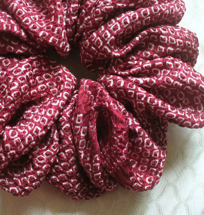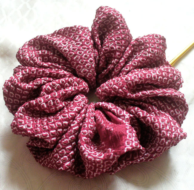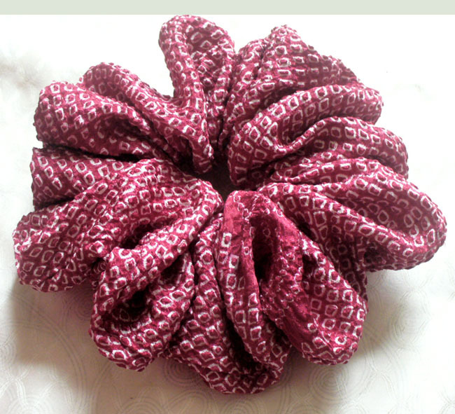 ゴム交換可能 15㌢総絞り ボリュミー ペタンコ フリルフリル シュシュ 着物リメイク 絹 和柄 手縫い ハンドメイド リメイク 着物 和物