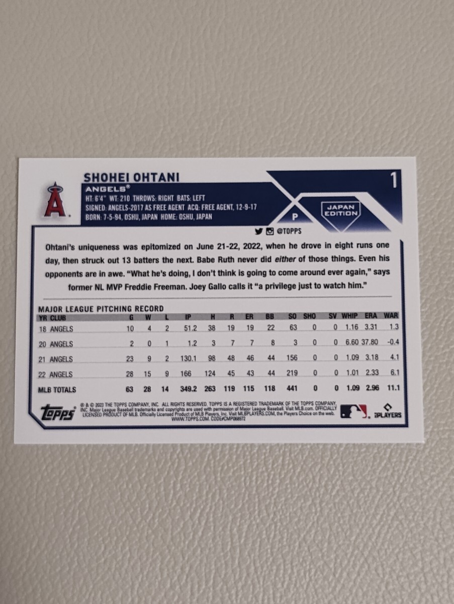 MLB 2023 TOPPS JAPAN EDITION 大谷 翔平 ベース #1