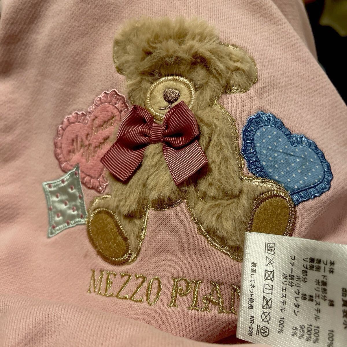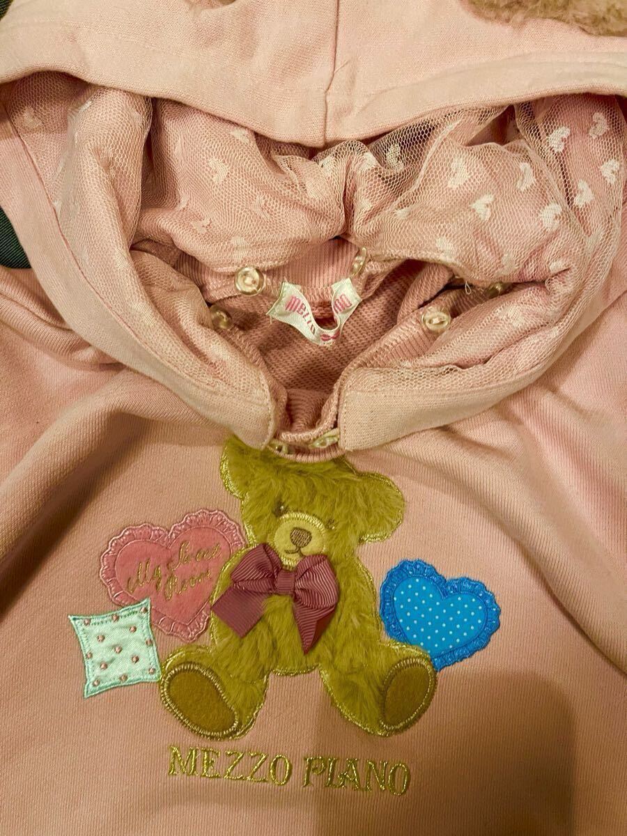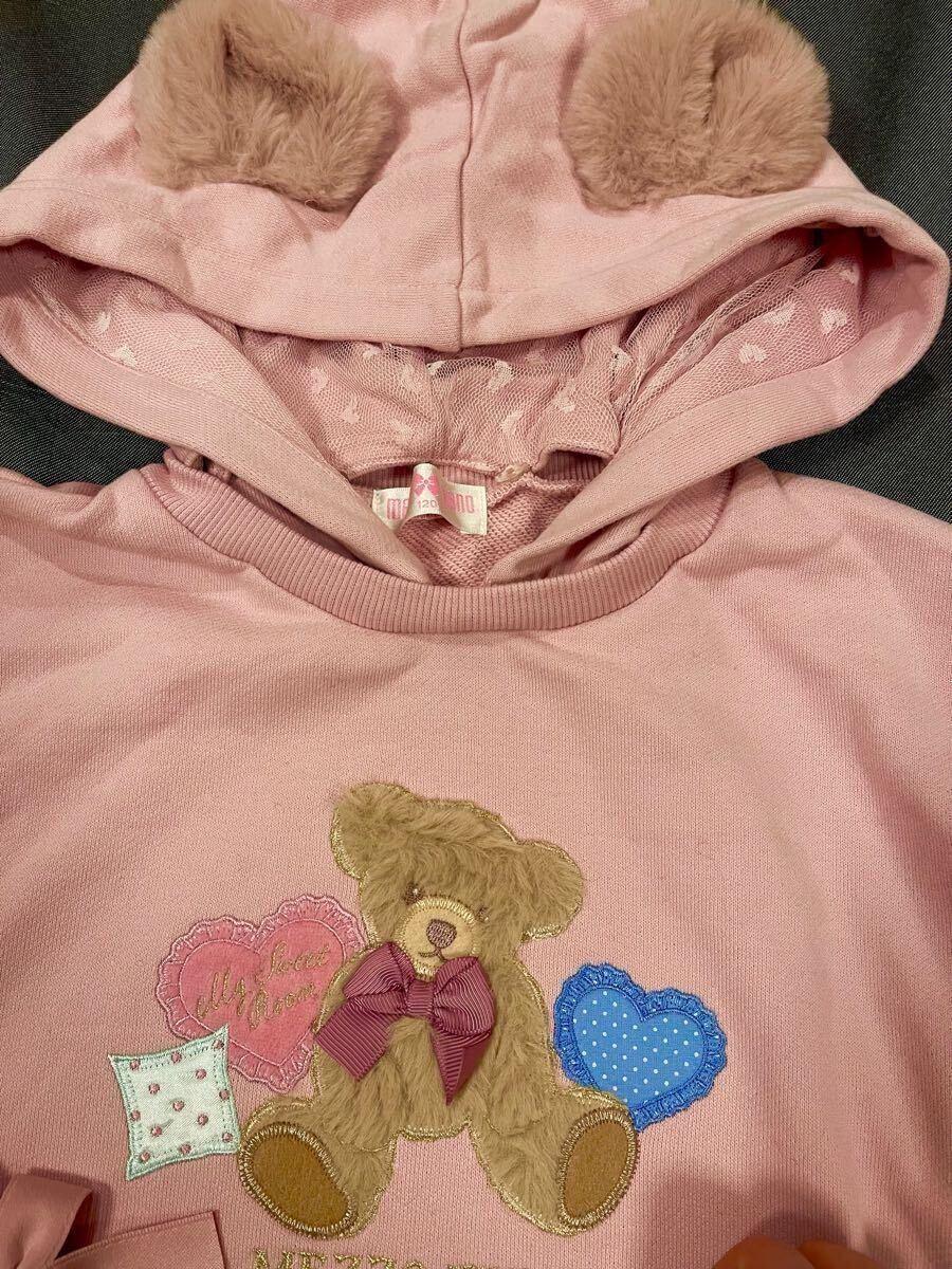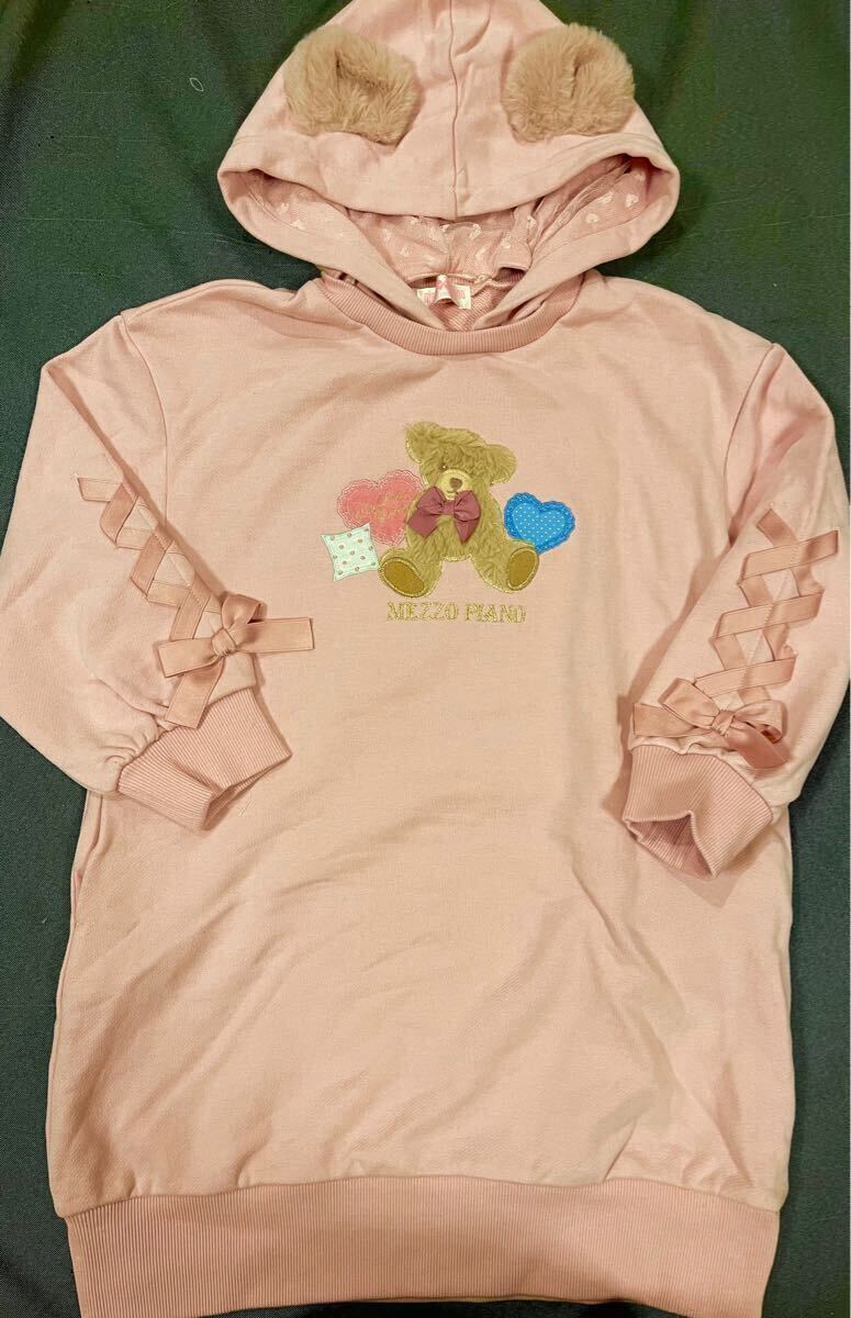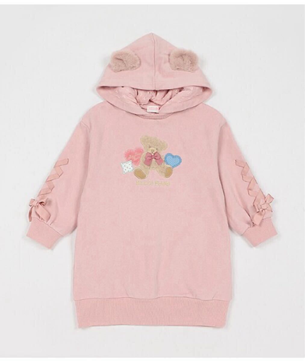 メゾピアノ新作クマアップリケフード取り外しフード付きパーカーワンピース110cmピンク色新品激安!送料無料