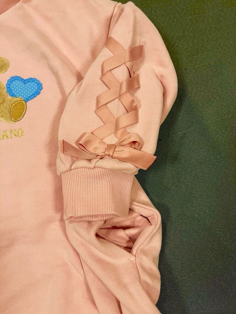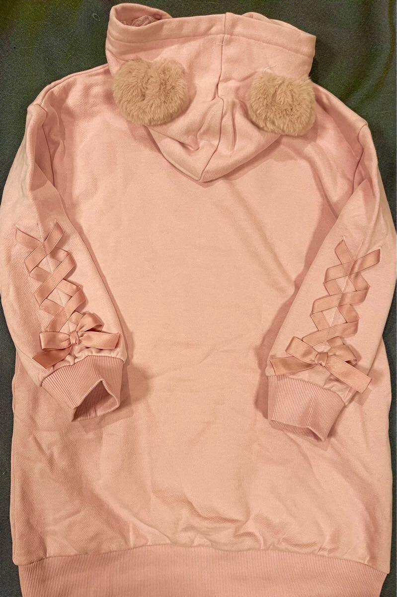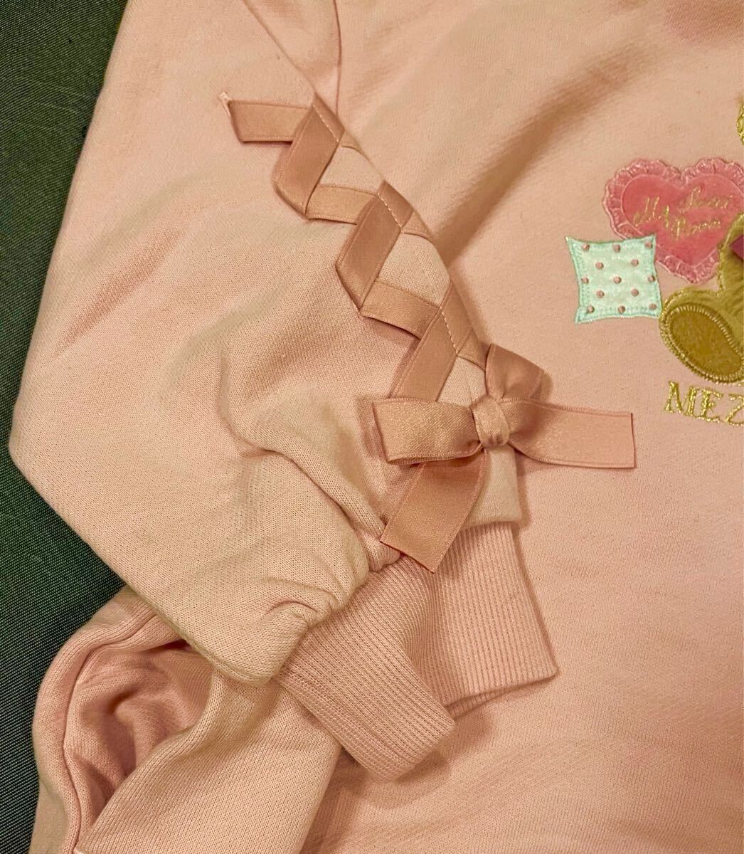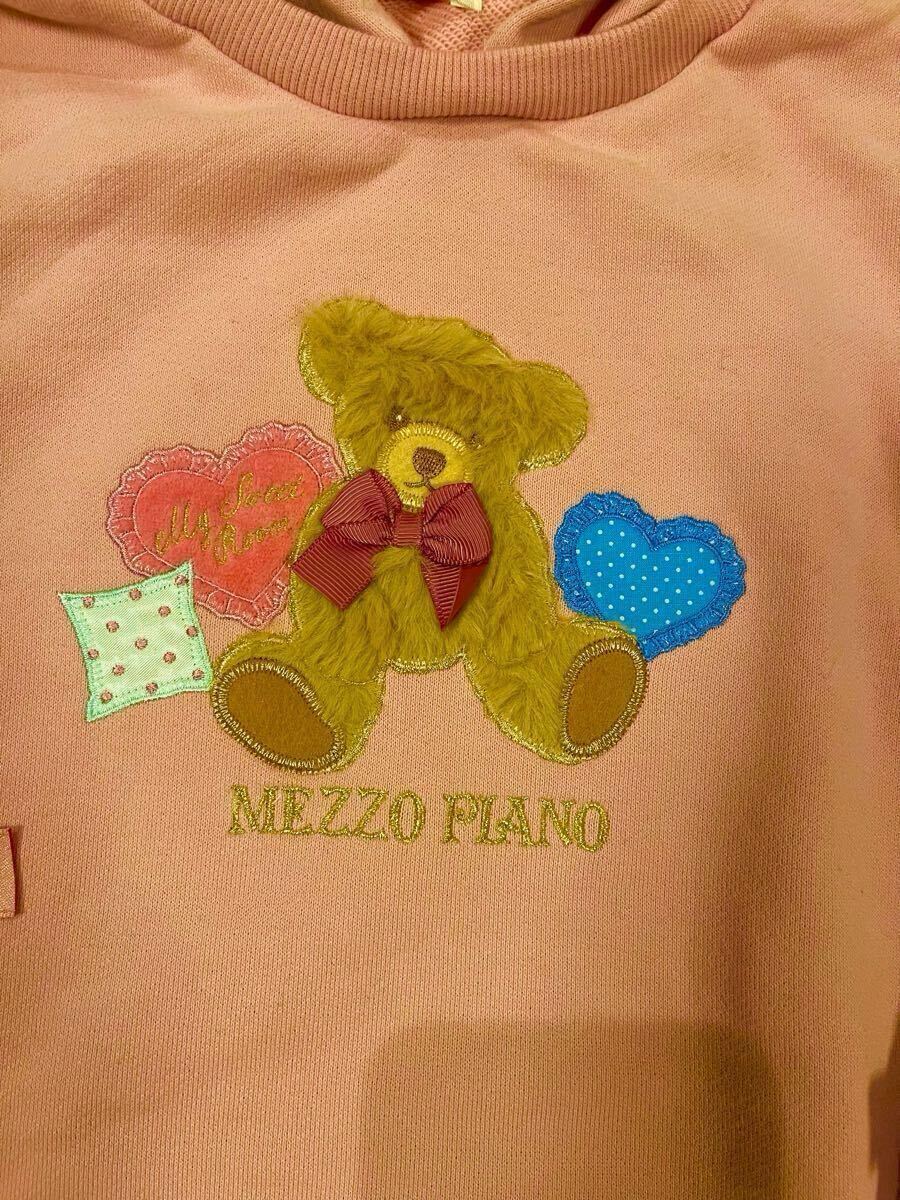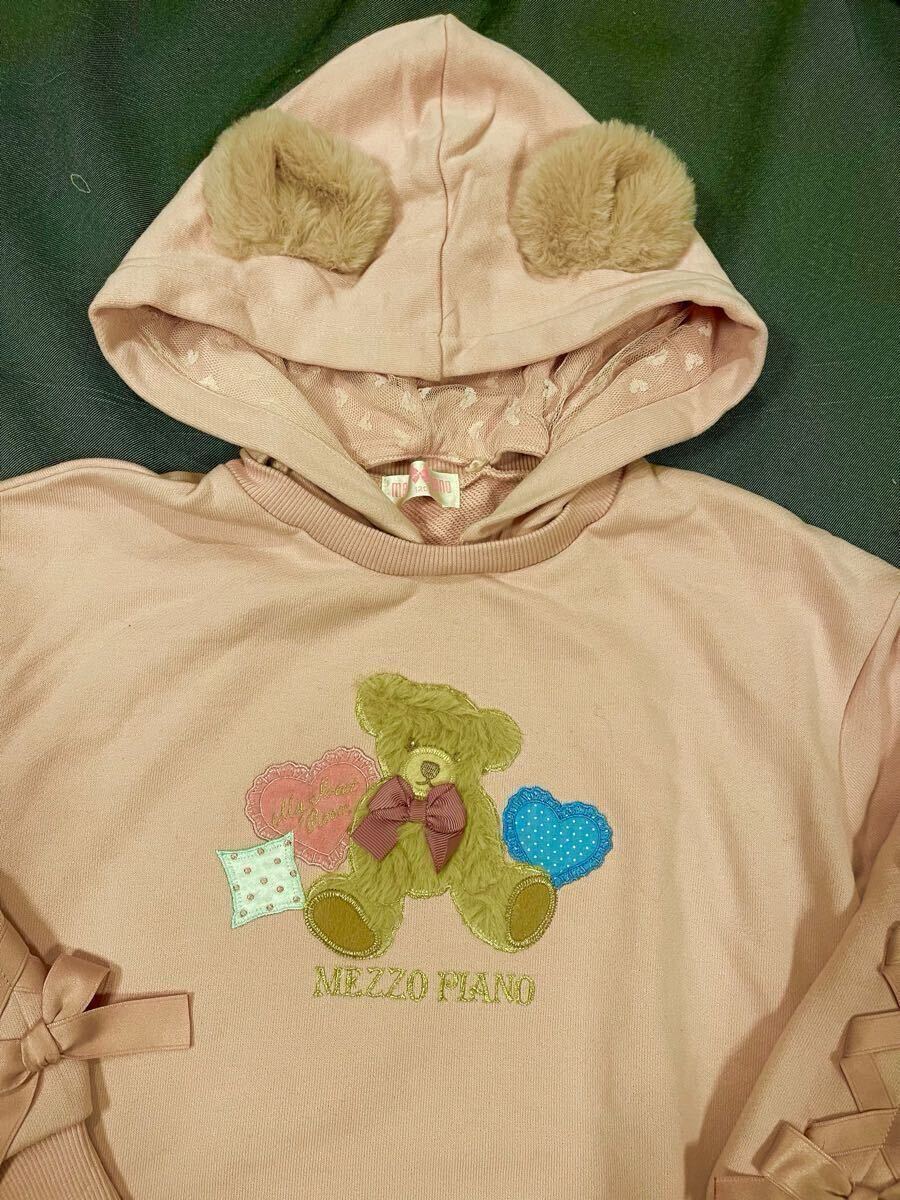 メゾピアノ新作クマアップリケフード取り外しフード付きパーカーワンピース110cmピンク色新品激安!送料無料