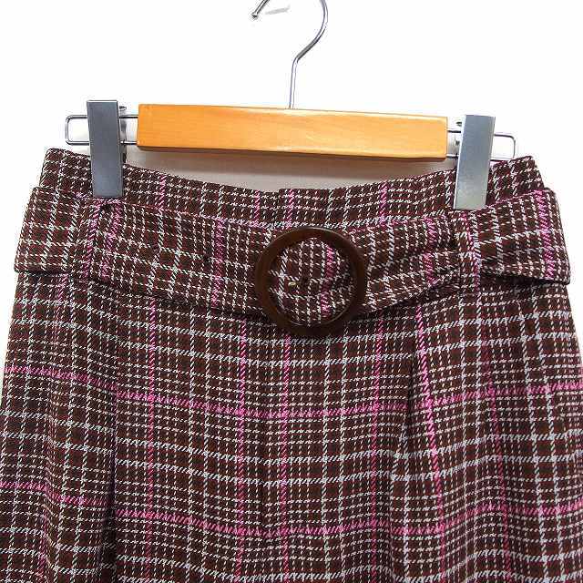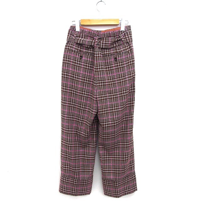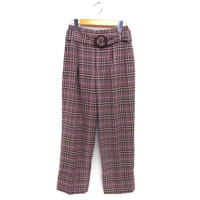 グリーンレーベルリラクシング ユナイテッドアローズ green label relaxing ワイド パンツ チェック ベルト ハイライズ ロールアップ 36