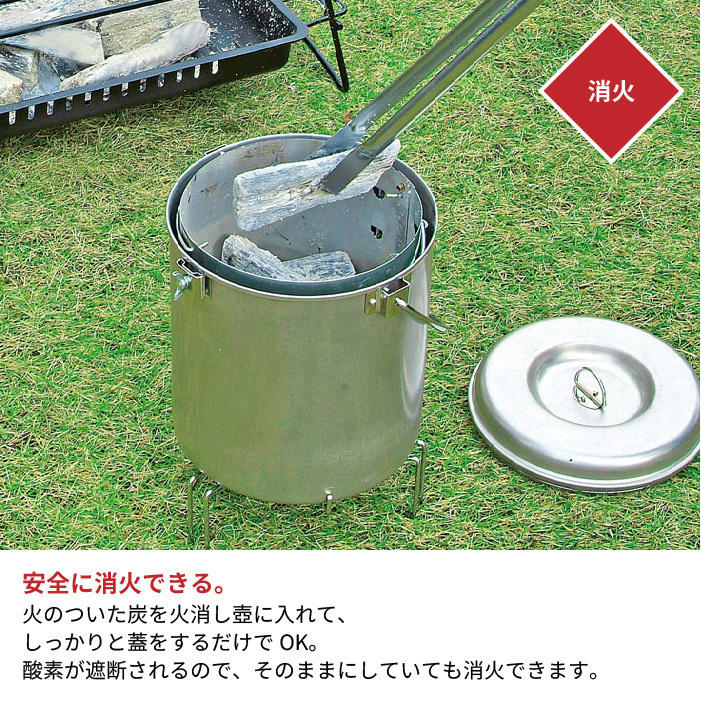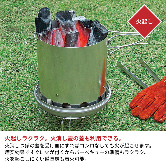 炭の火おこしから消化、再利用までこれ1つでできる大型火消しつぼ・火起こしセット。