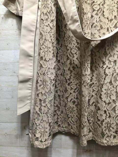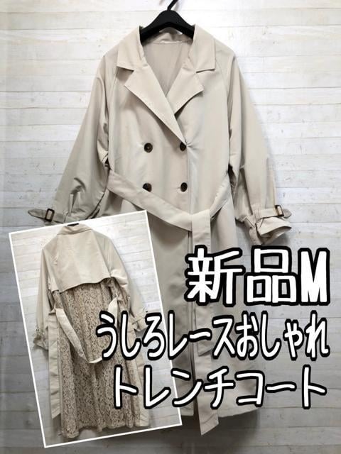 新品☆Mグレージュ系♪後ろレースかわいいトレンチコート〇B909