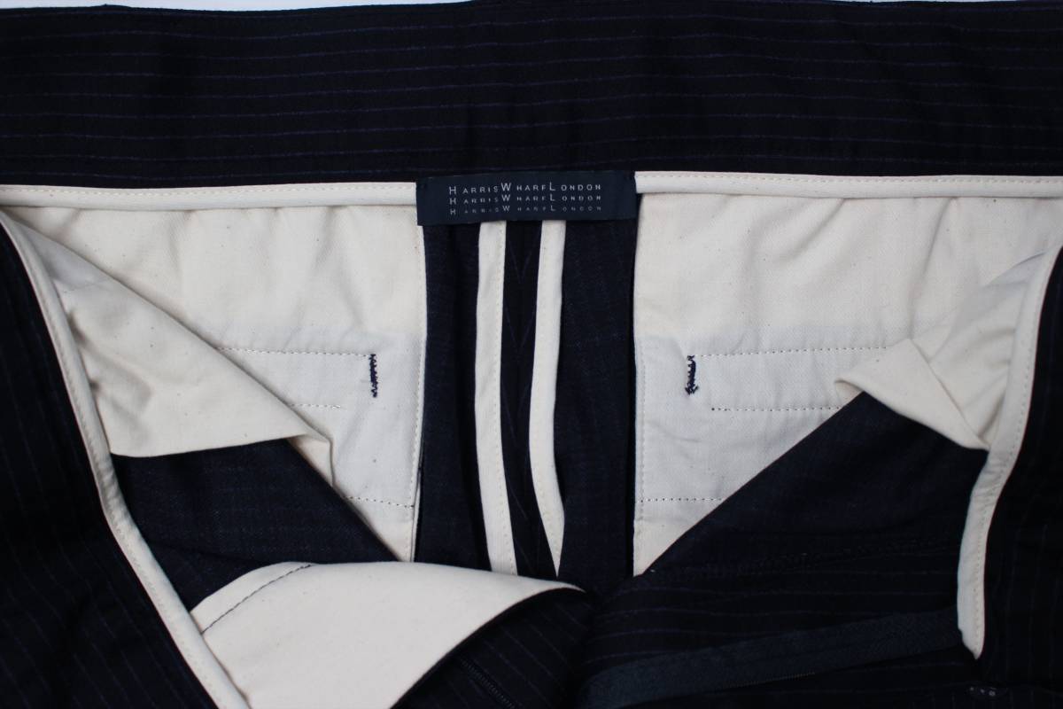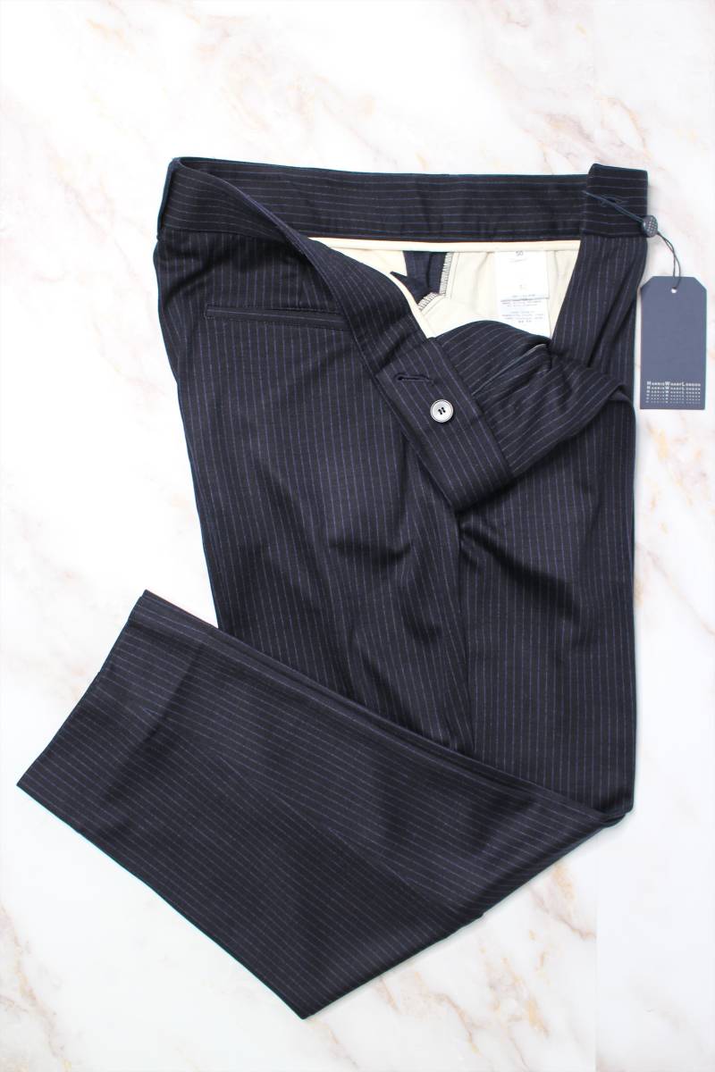 50 春秋冬 スペシャル特価!「ハリス・ワーフ・ロンドン」イタリア製・ジャージ素材・Dブルー・ピンストライプ♪サイズ50(L)