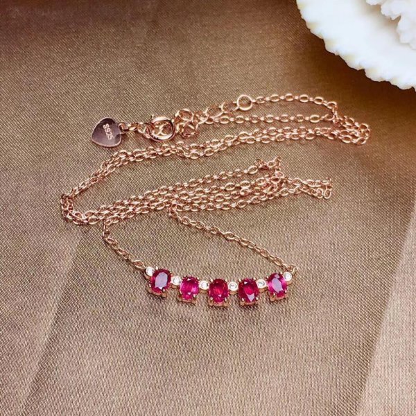 925 シルバー天然ルビーネックレス、 3×4 mm、5 個、女神ネックレス
