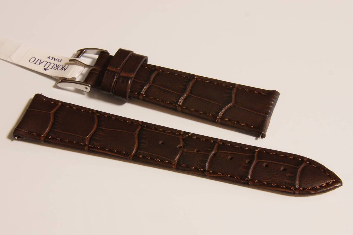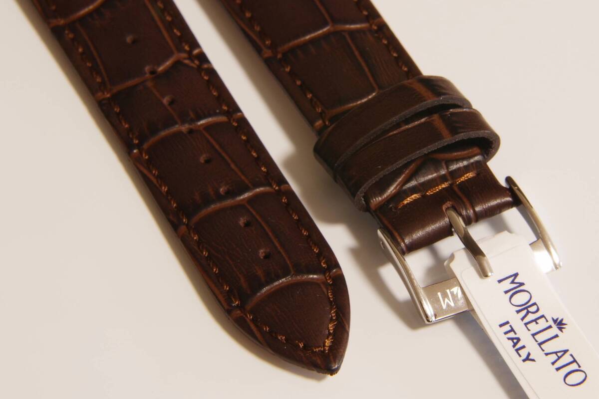 《送料サービス》ラグ幅 21mm カーフ(アリゲーター型押) モレラート ボーレ  ダークブラウン クリッカー仕様