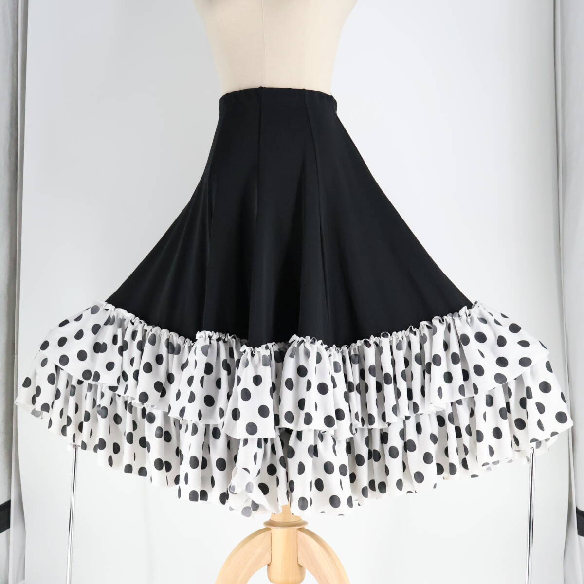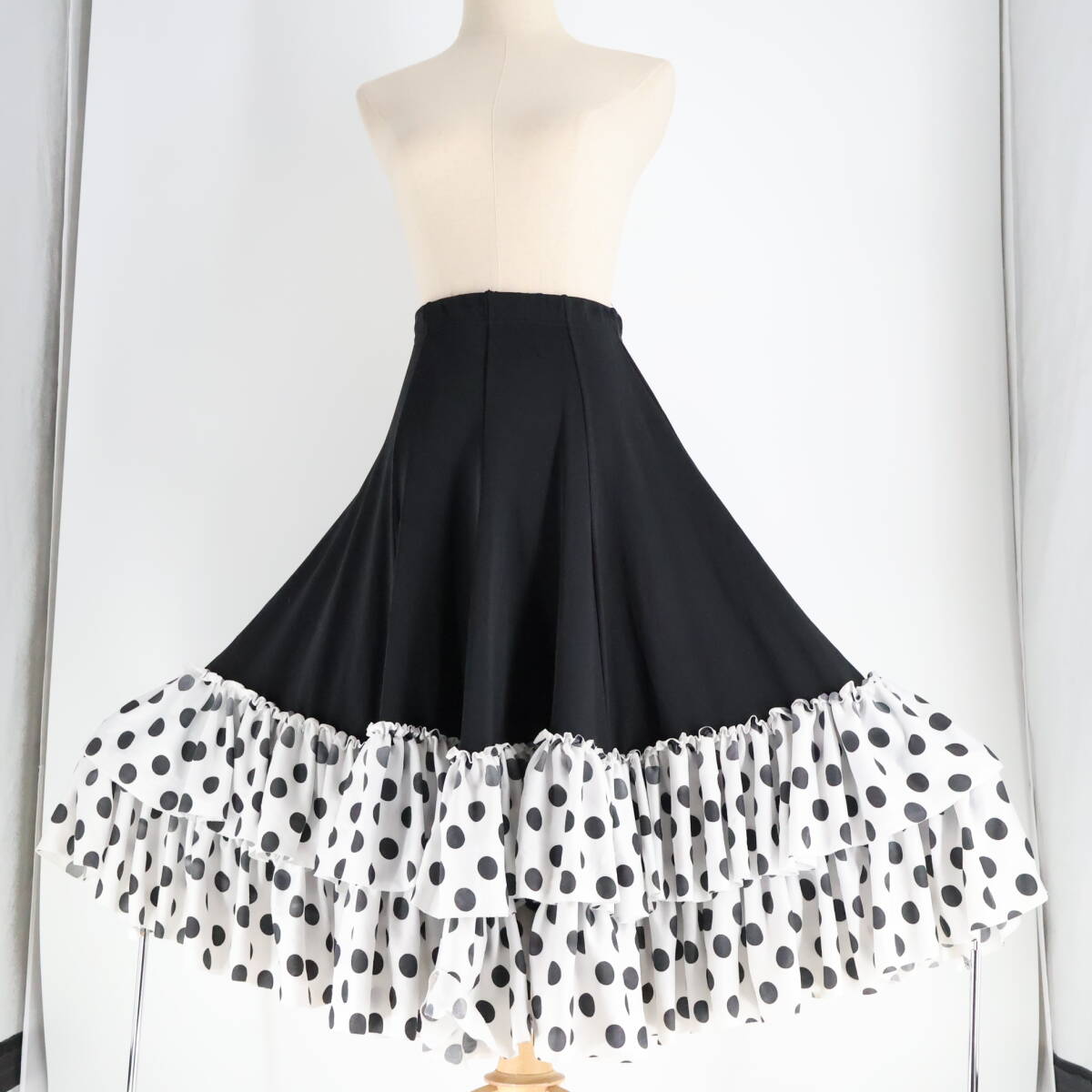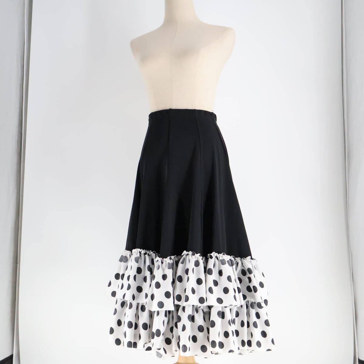 商品説明 | 【商品名】フラメンコ衣装 ファルダ スカート ファルダ 【サイズ】表記無し 平置き実測:総丈約71cm、ウエスト約24cm~ ※実測の為、多少の誤差はご容赦願います 【仕様】 ・ウエストゴム仕様 ・伸縮性有り ------------------------------------ 【ポイント】 ▽全体伸縮素材で動きやすい ▽段々の白黒水玉ボランテ ▽レッスン用として ------------------------------------ 【撮影時使用トルソー:女性用トルソー7号(少し細めのサイズです)】 トルソーサイズ詳細 肩幅約37cm、バスト約83cm、ウエスト約60cm、ヒップ約81cm |