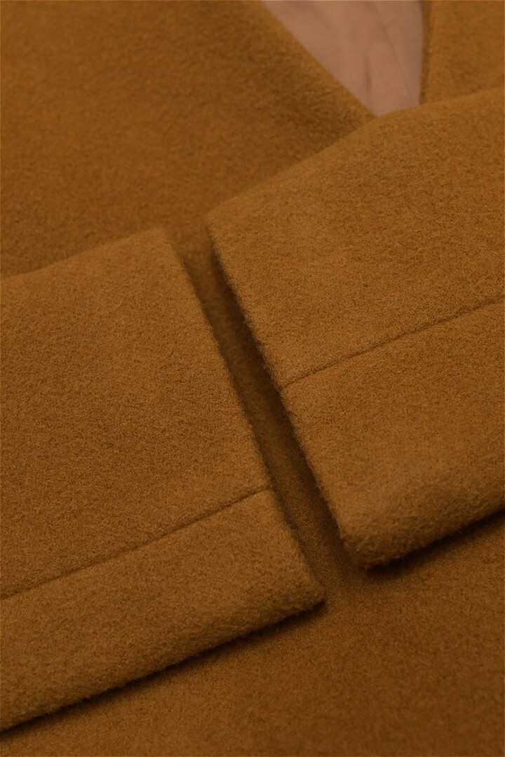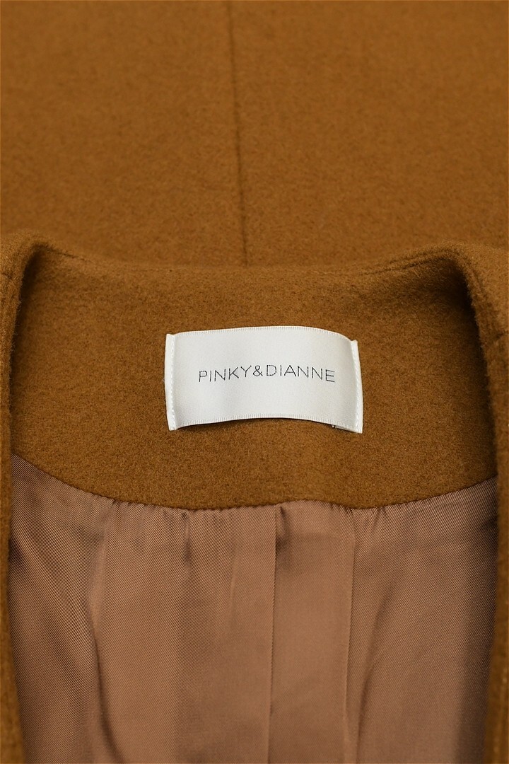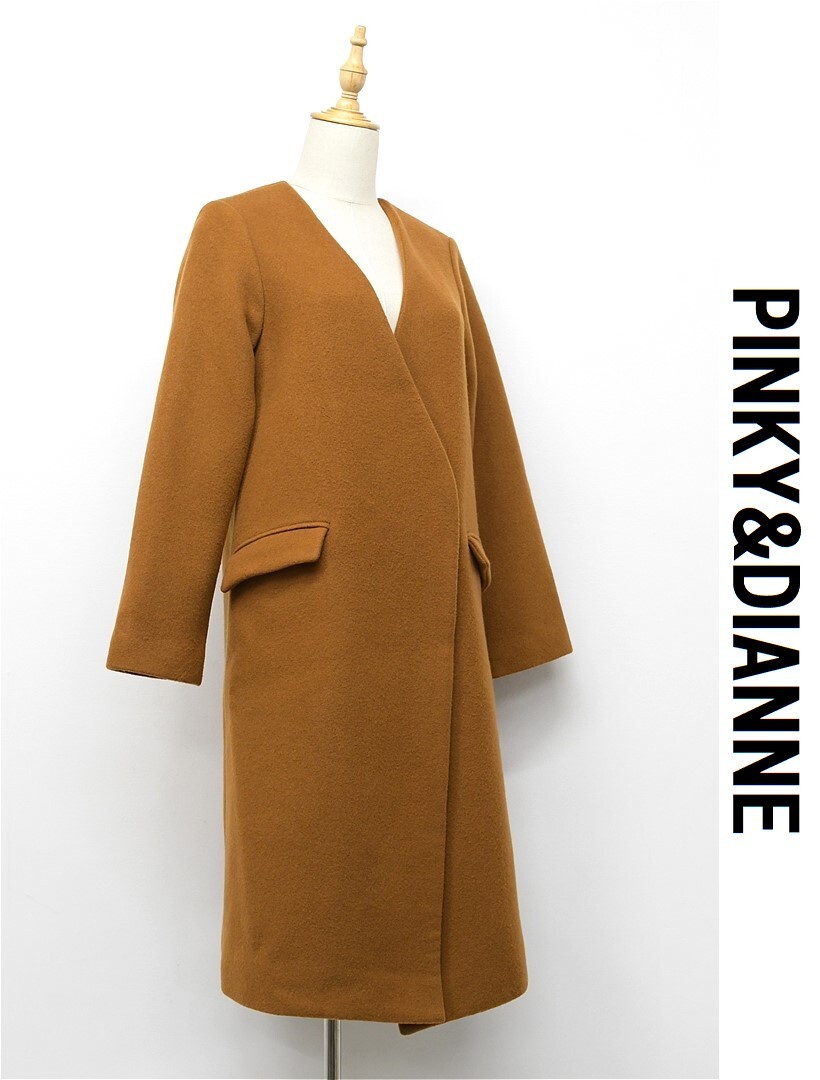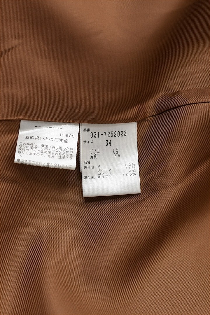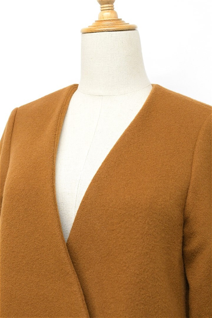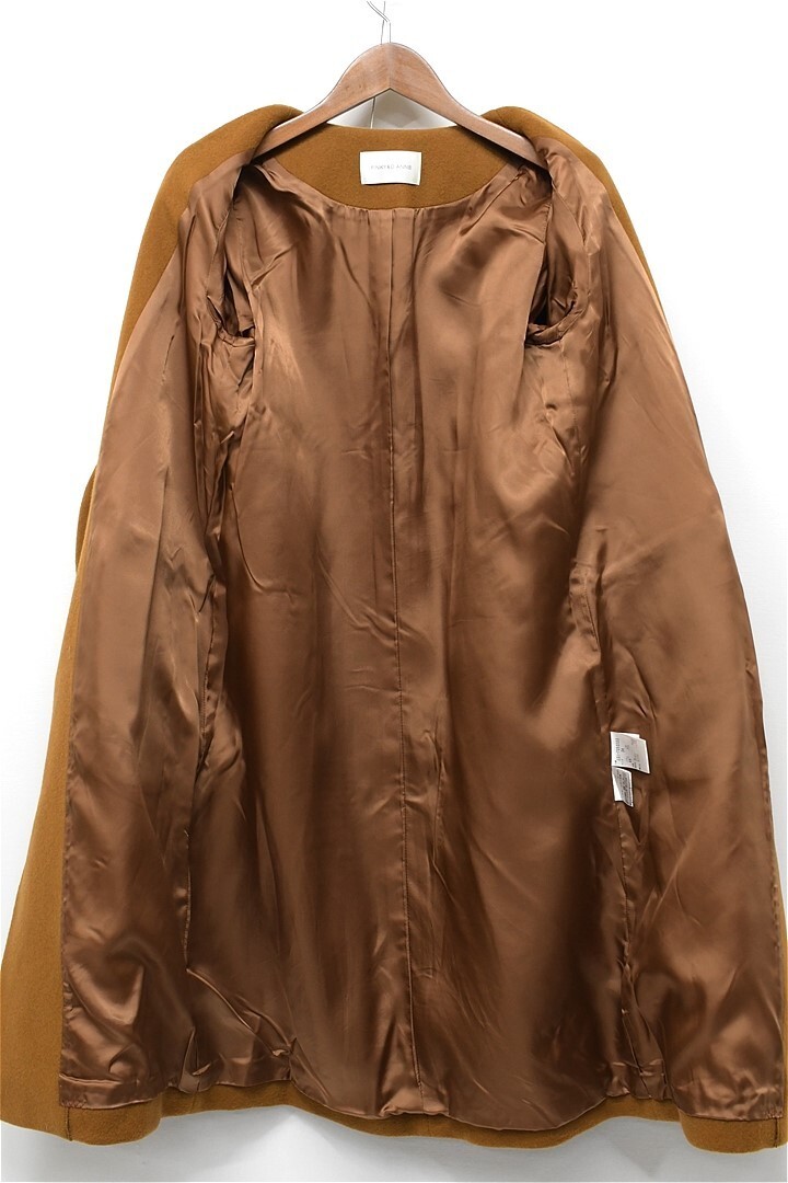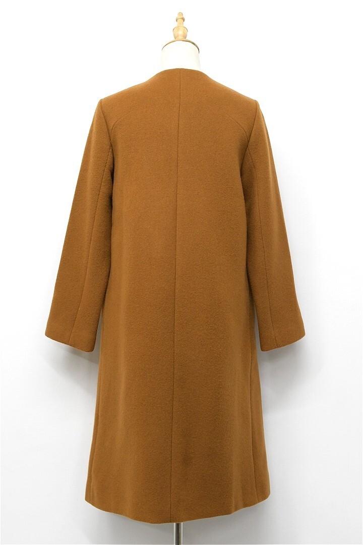 F-J410/美品 PINKY&DIANNE チェスターコート ロングコート ノーカラー カラーレス ジャケット ウール 34 S~M ブラウン