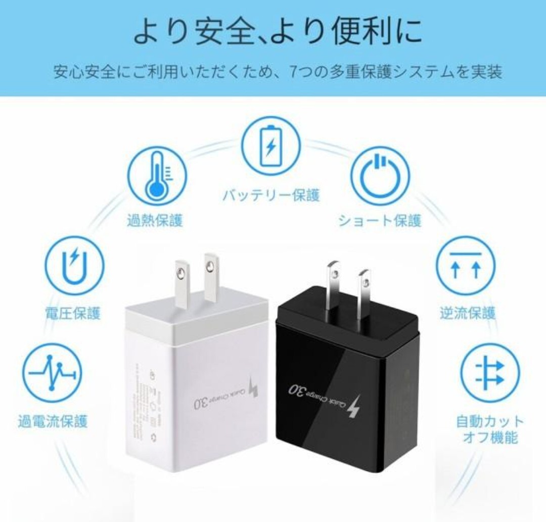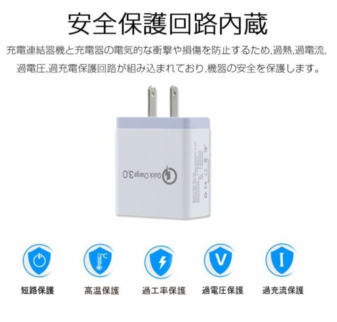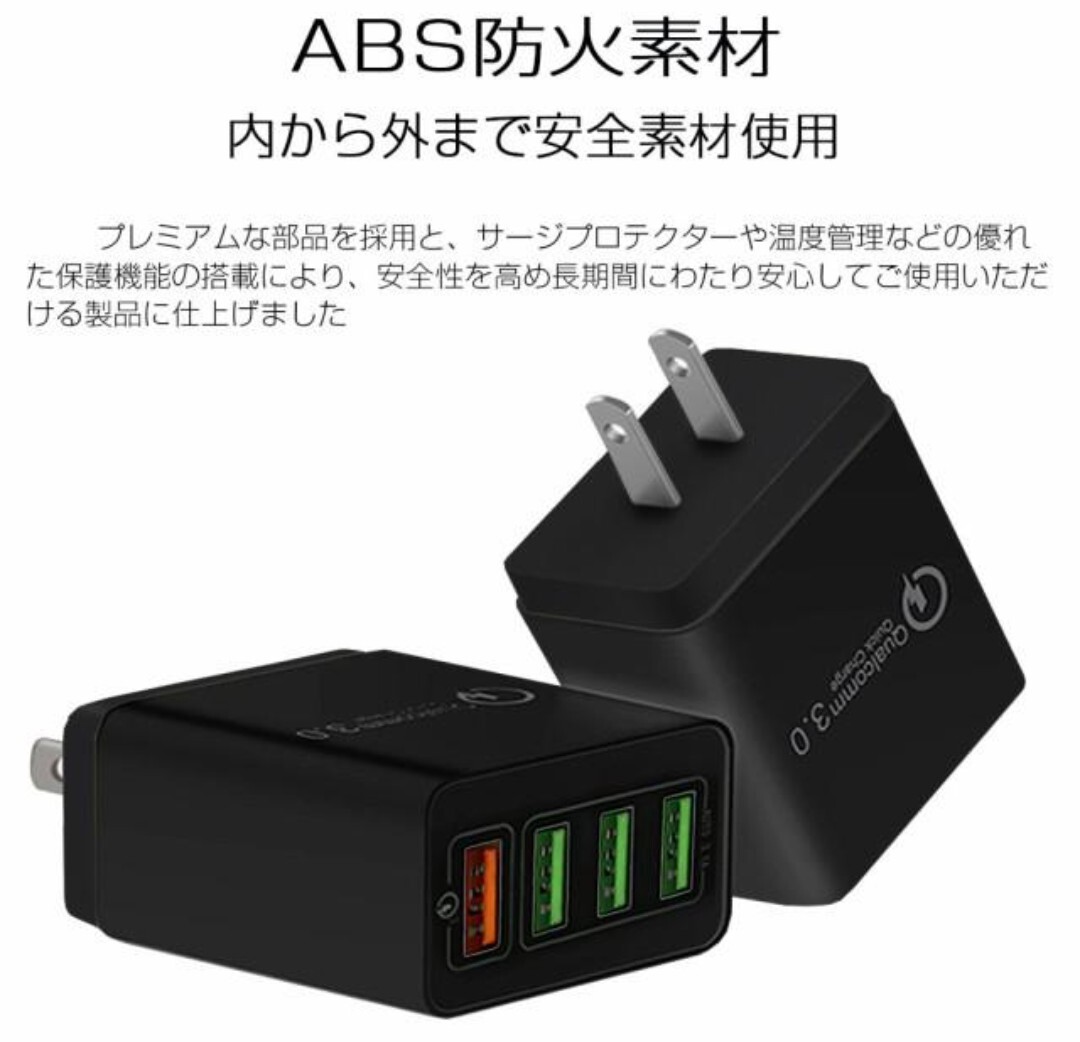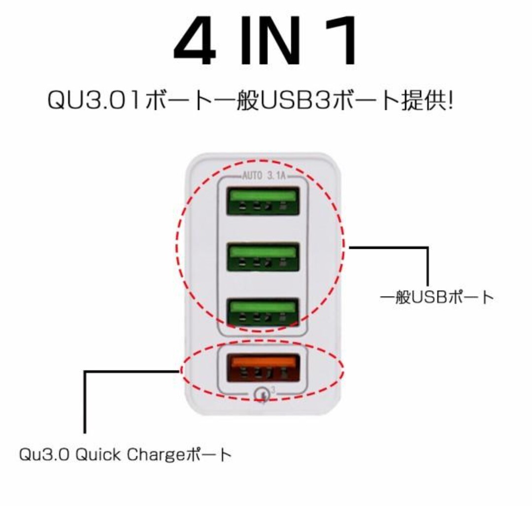 3ポートはノーマル3.1Aで、1ポート高速充電Quick Chargeです。