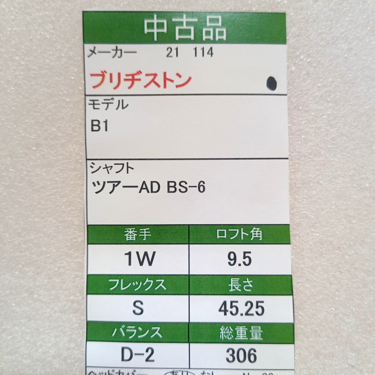 【即決価格】【1W】 ブリヂストン/B1/9.5度/ツアーAD BS―6/FLEX S/カバー有り