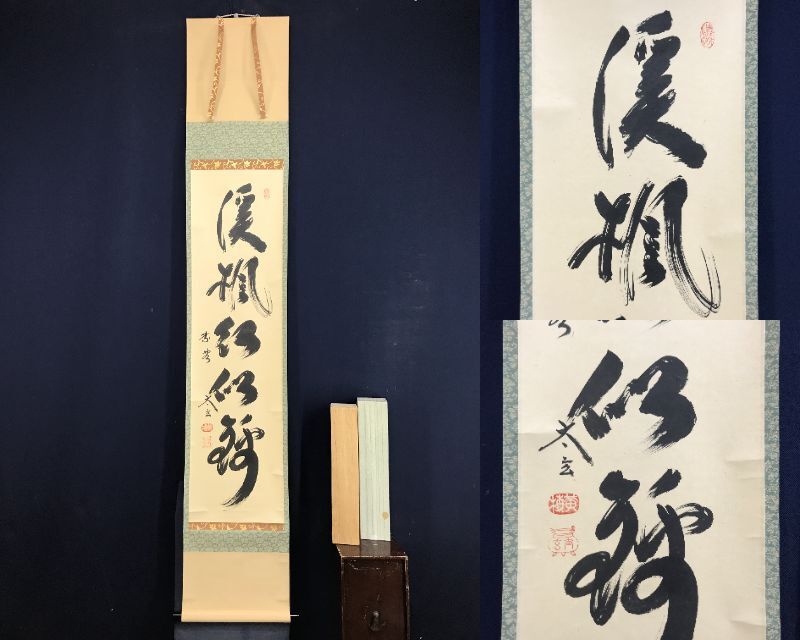 真作/大徳寺/紫野太玄/小林太玄/一行書/渓楓紅似錦/茶道具/茶掛/禅語/掛軸☆宝船☆AH-742