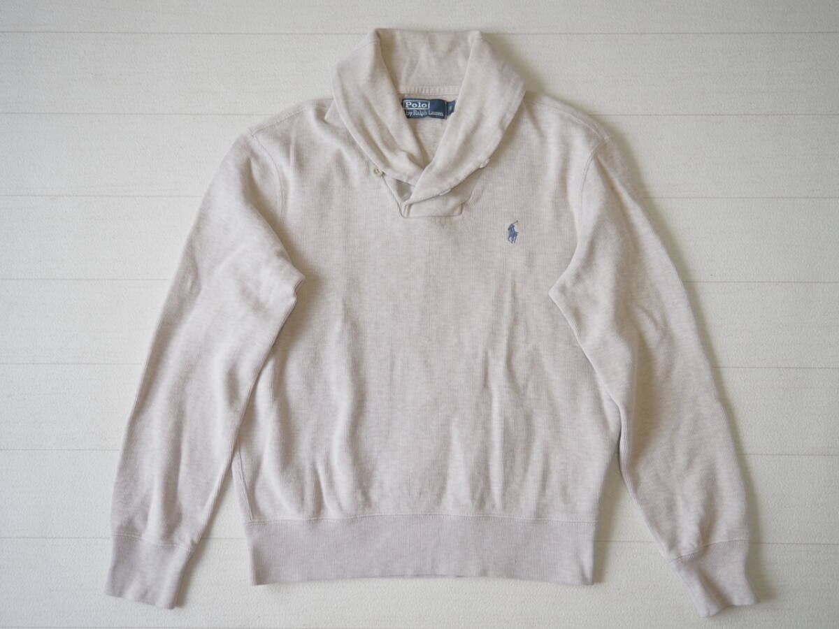 Polo by Ralph Lauren ポロ ラルフローレン USA直輸入 古着 ショールカラー ニット プルオーバー メンズ S ベージュ 中古 トップス