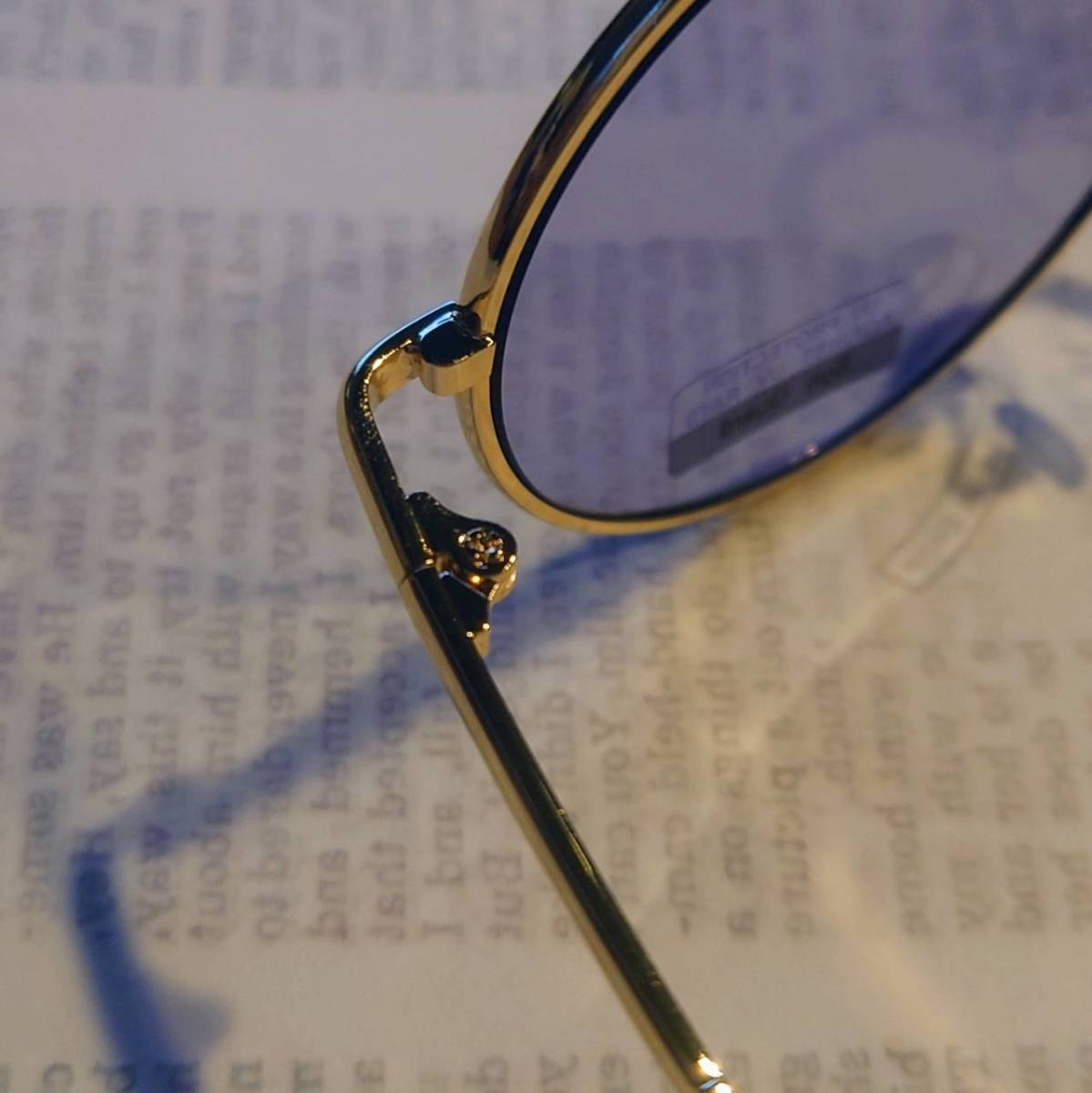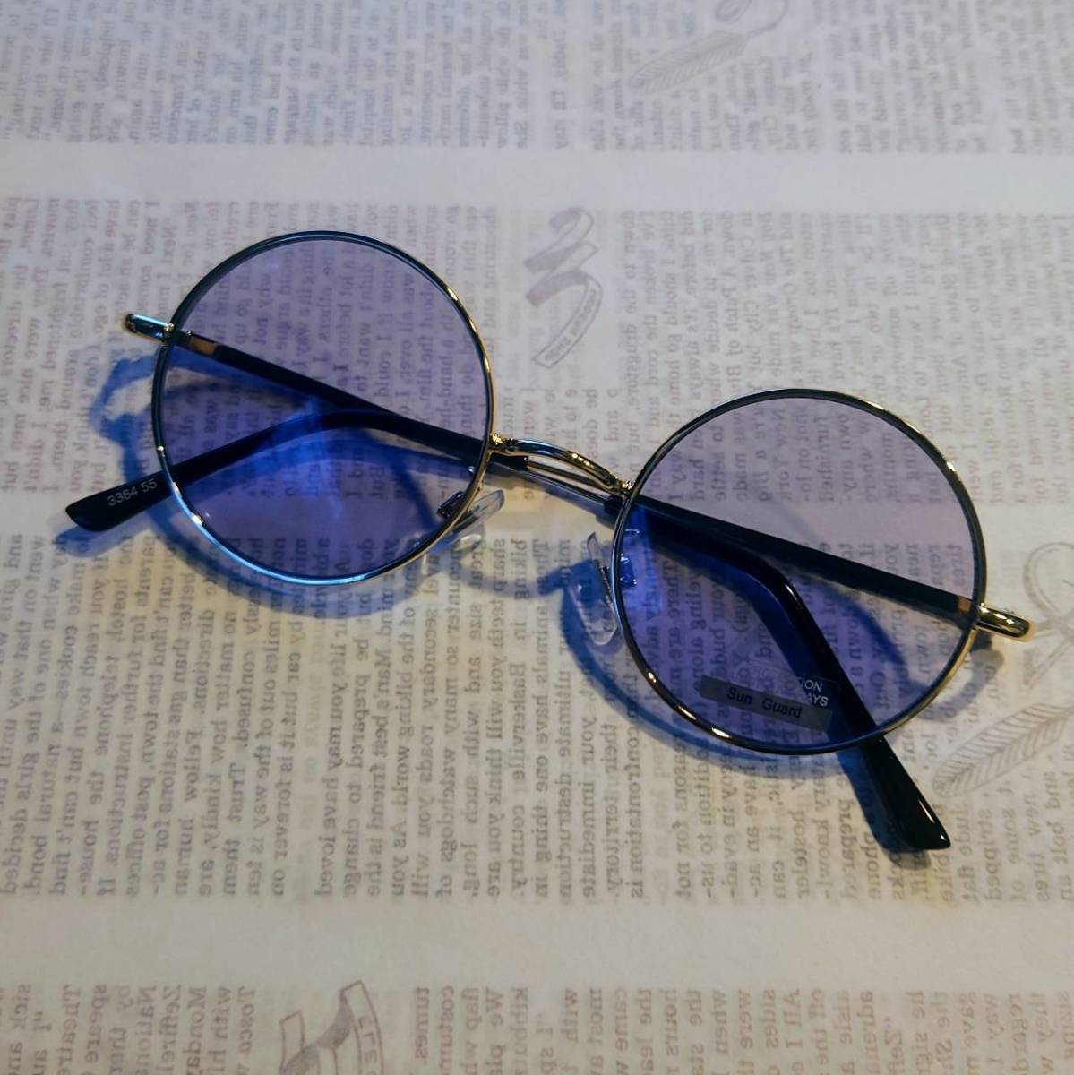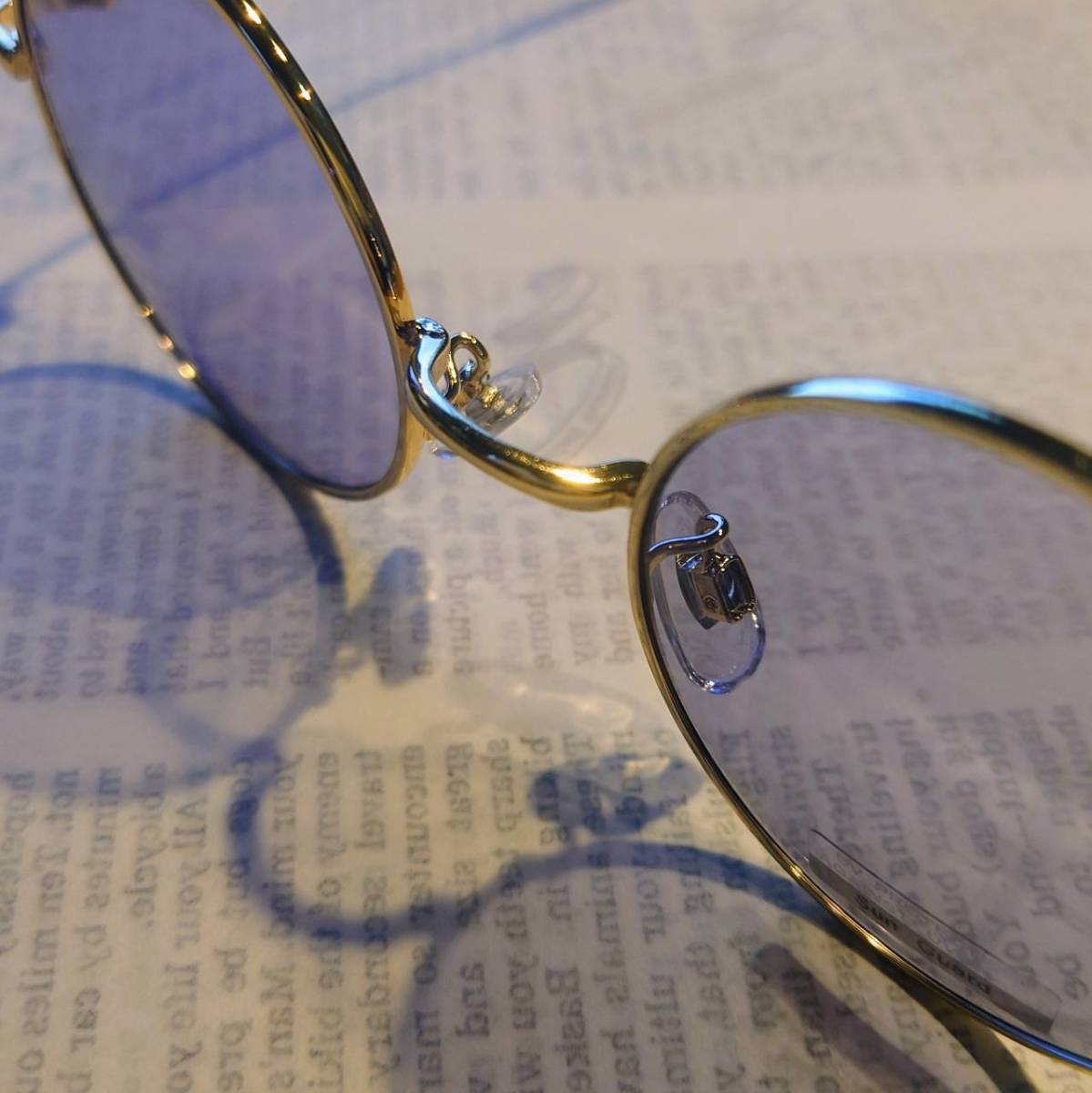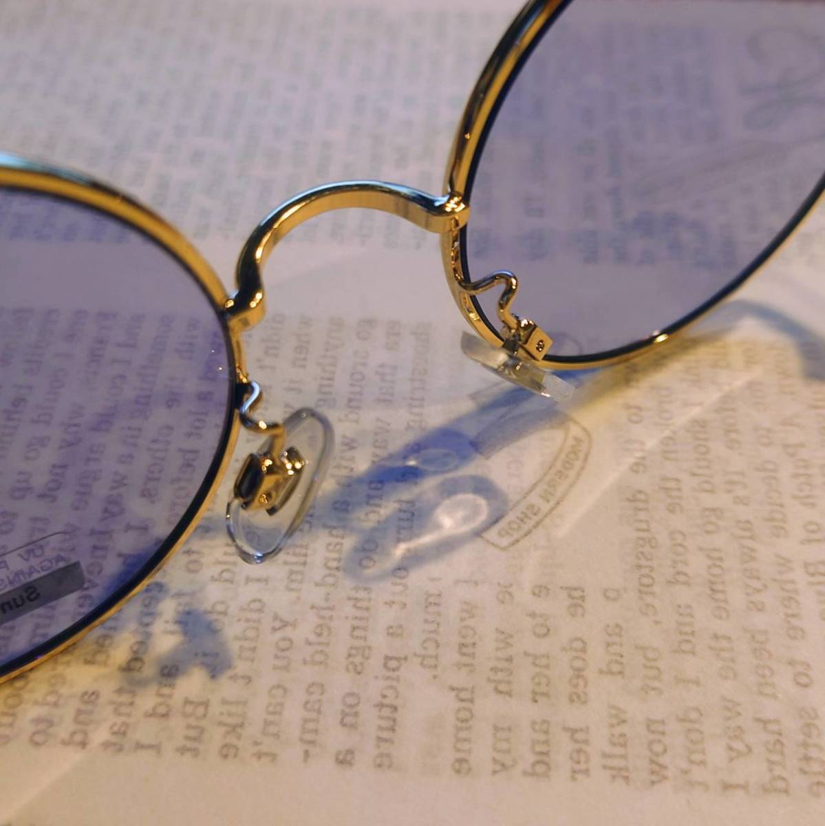 【新品未使用】サングラス 丸メガネ メンズ レディース UVカット ラウンド型 ゴールドフレーム ライトカラー / 3364 パープルレンズ