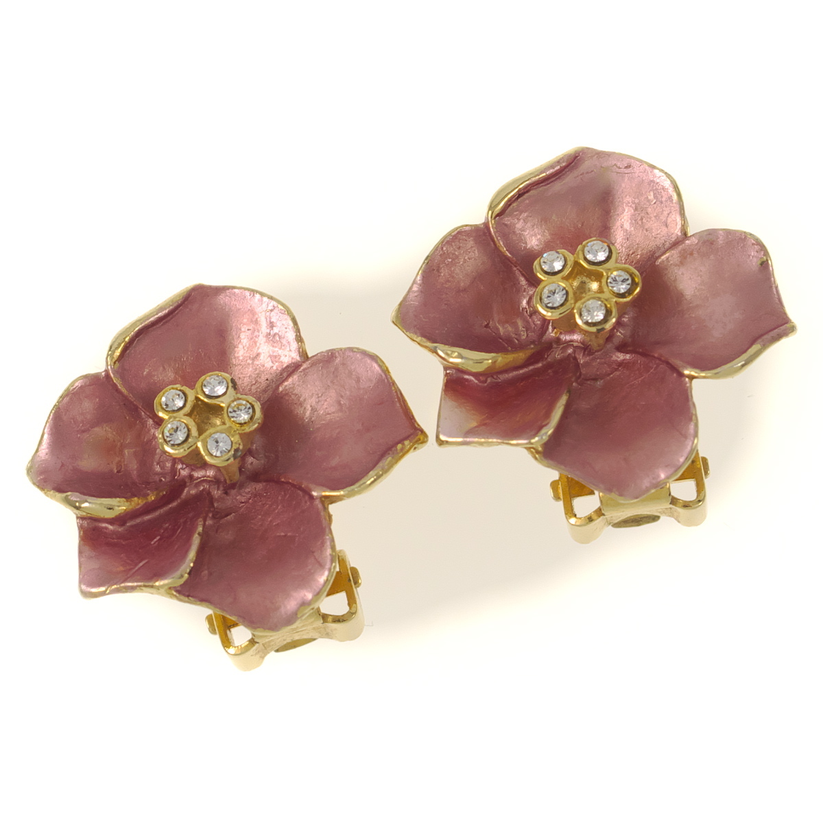 A10147◆ ピンク系の花 フラワーモチーフ ◆ ヴィンテージイヤリング ◆