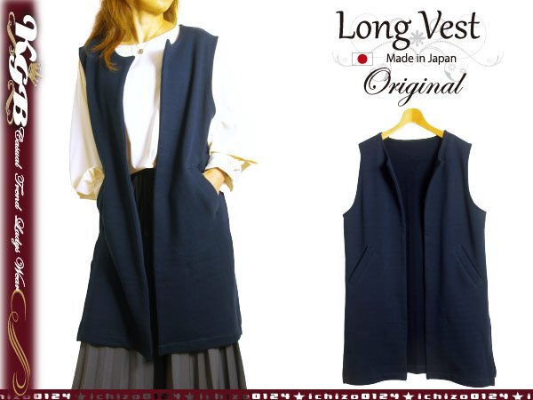 ■ベスト ロング丈 スウェット レディース 裏毛 日本製 オリジナル M-L ネイビー 新品■