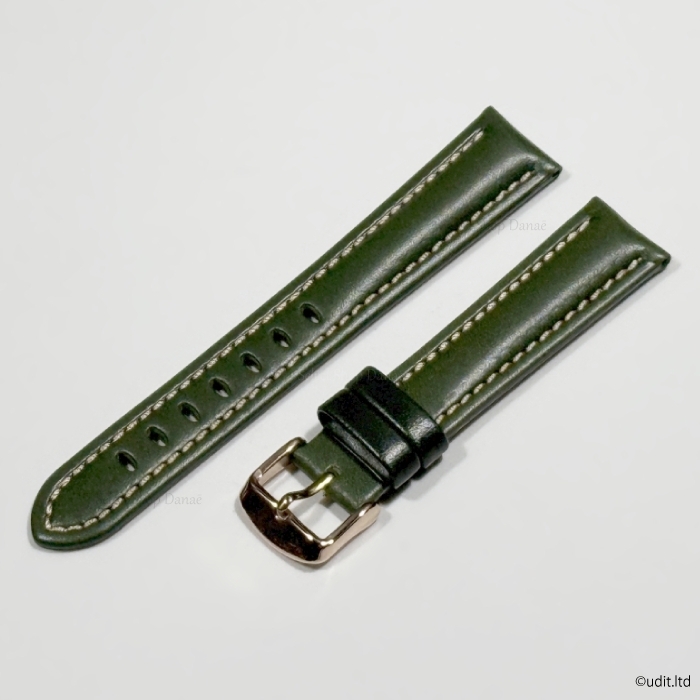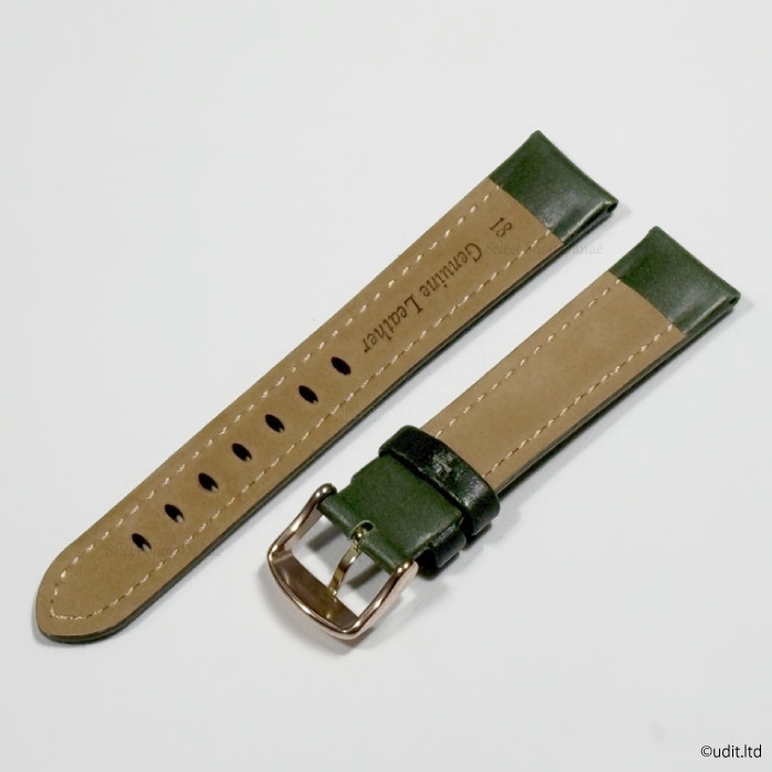 ラグ幅 18mm コードバン 本革 レザーベルト グリーン ローズ ゴールド 尾錠 時計用バンド 腕時計ベルト LB101