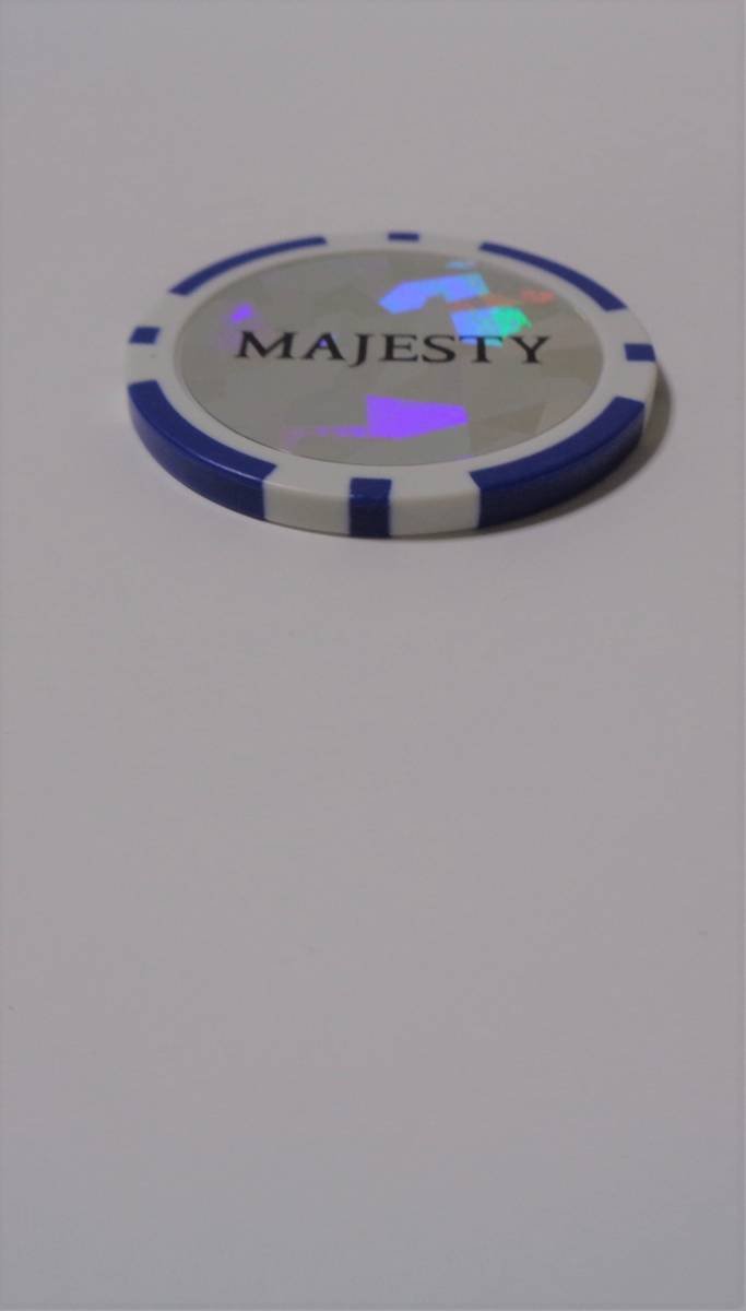 ★送料込 ★新品 未使用 カジノチップタイプ MAJESTY マジェスティ  青 シルバー/ブルー 見やすいホログラムタイプ