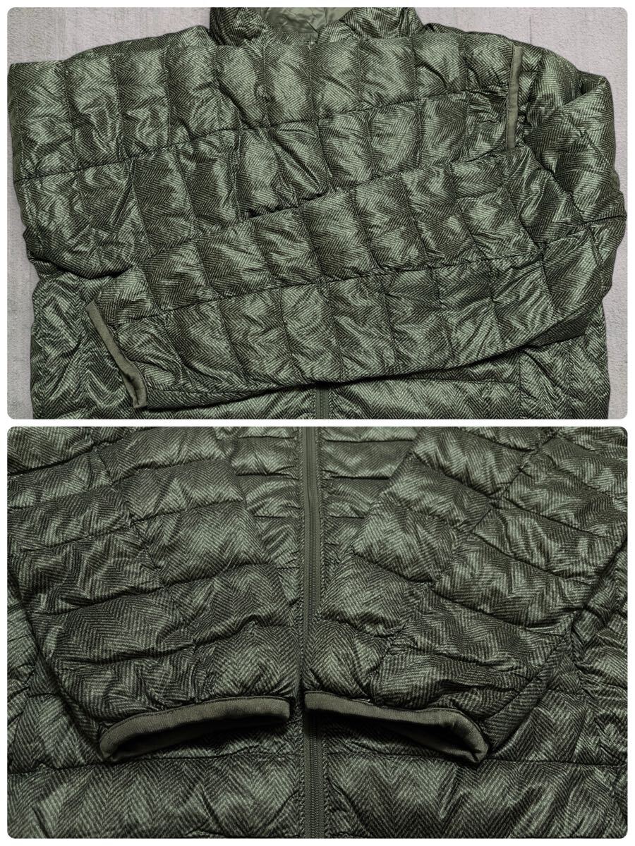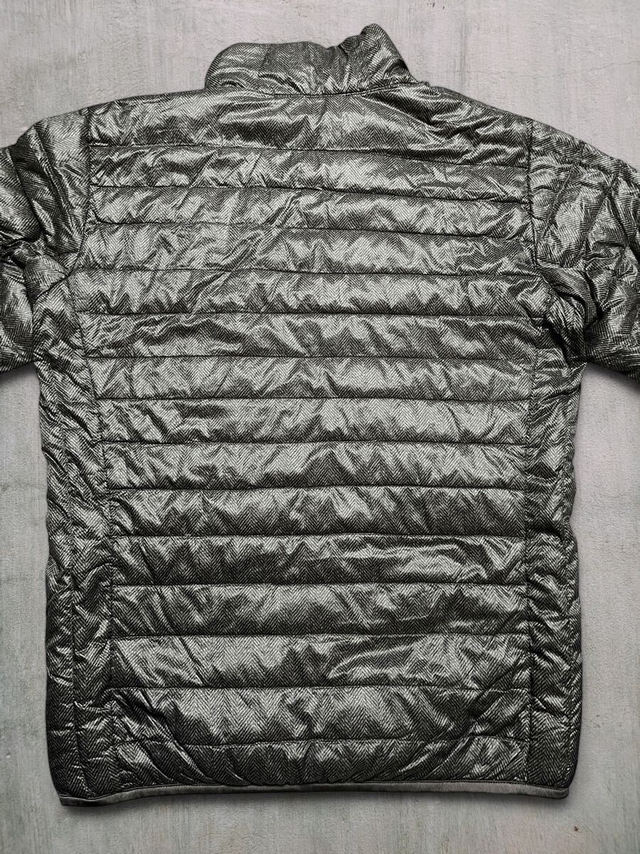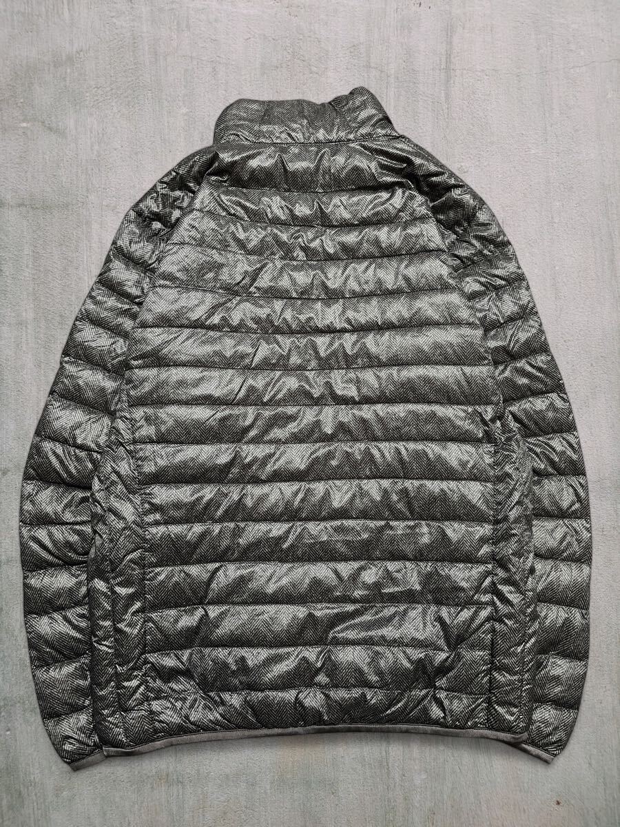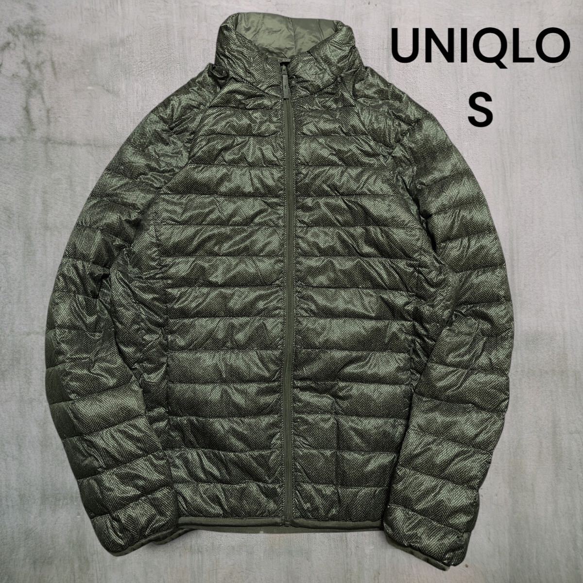 UNIQLOウルトラライトダウンジャケット メンズS●洗濯プレス済●ヘリンボーン柄 黒系 ユニクロ ダウンジャケット 軽量 防寒 ダウン 古着/68