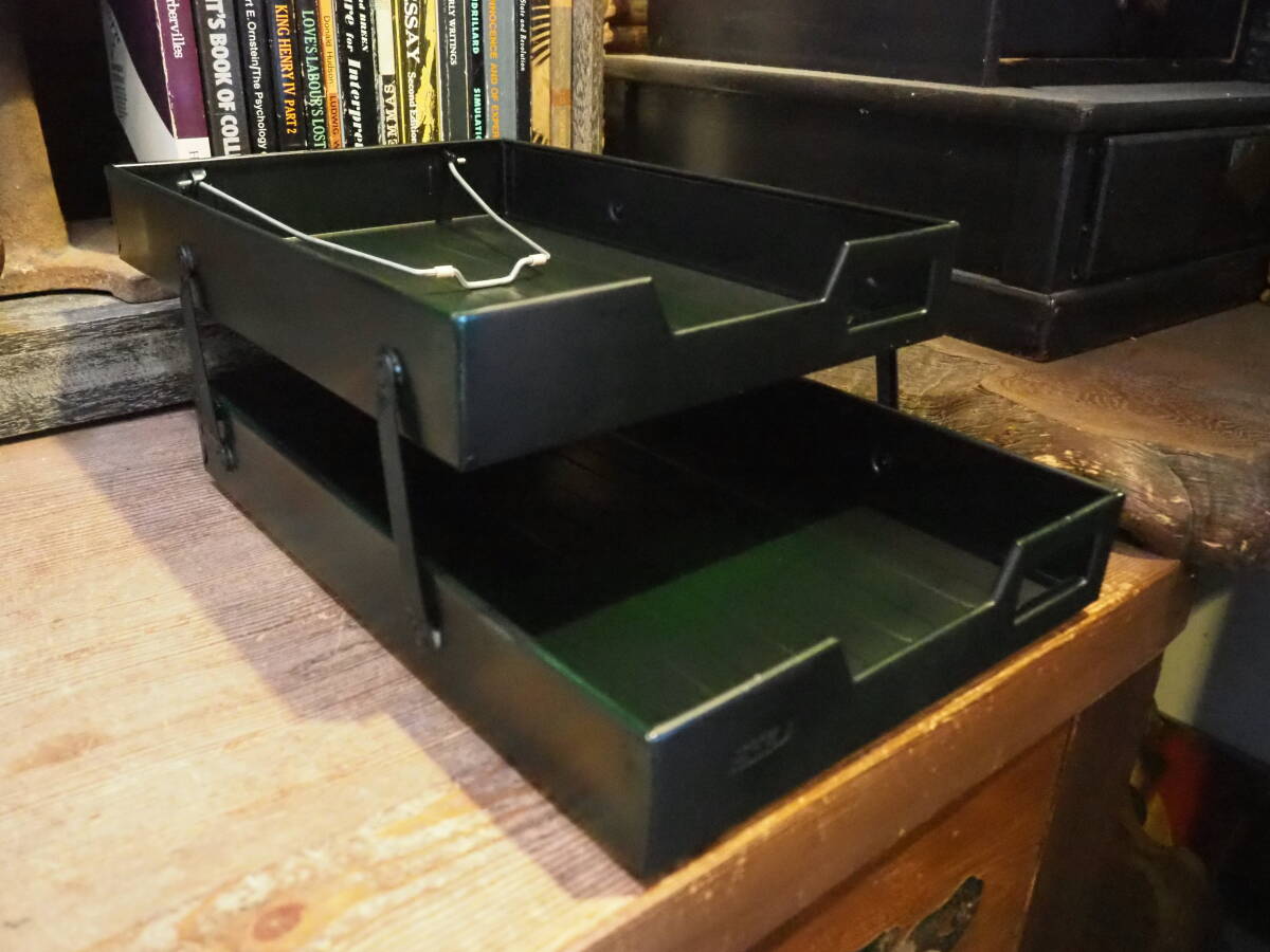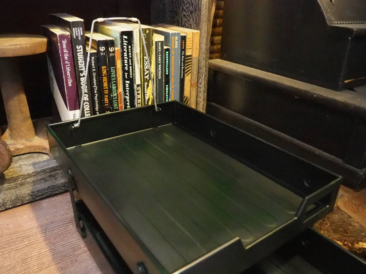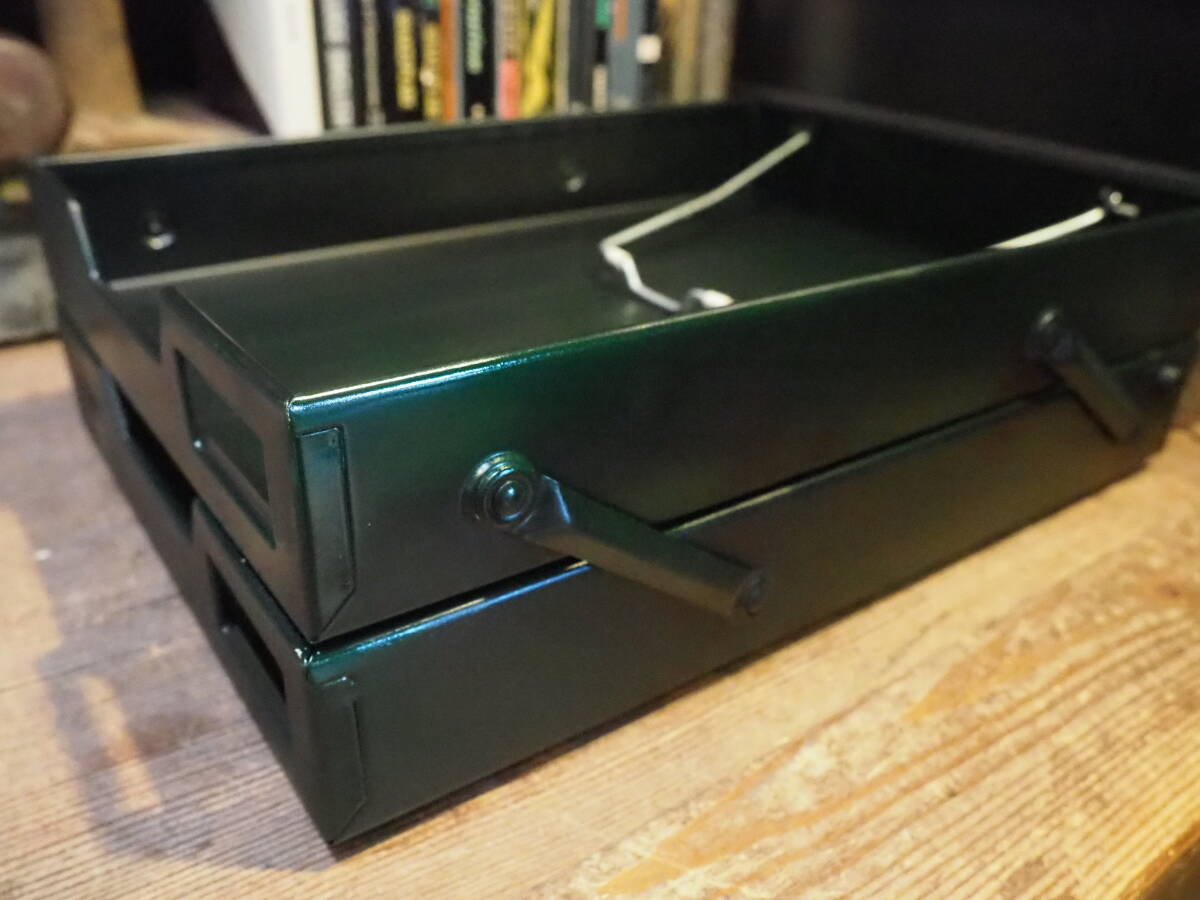 【2段スチールラック深緑】コクヨ昭和アイアン引出し書棚収納ケースおもちゃ箱筆記文具古道具アンティークインテリア骨董デスク卓上机