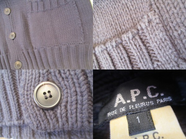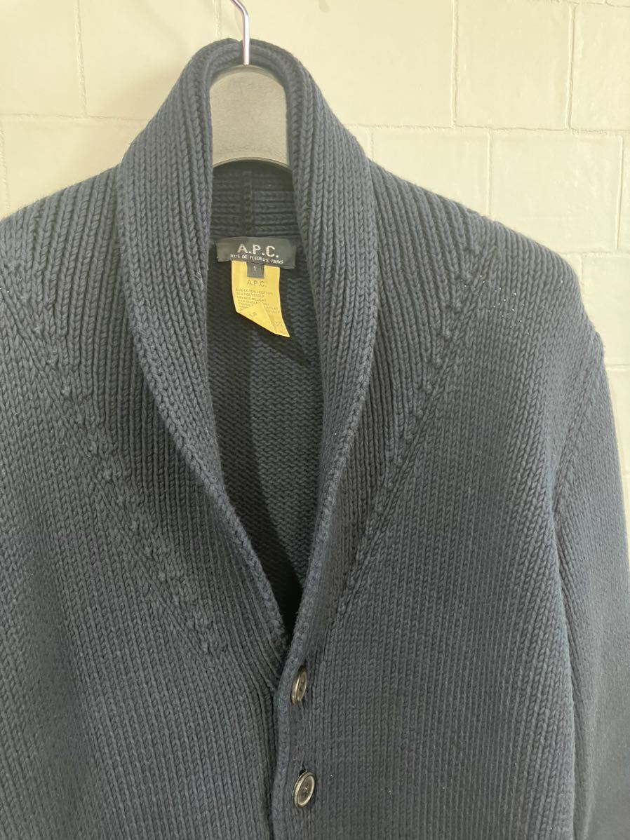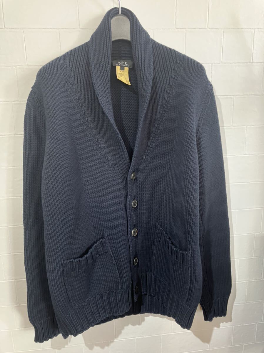 即決 2000年代初頭 A.P.C. アーペーセー ミドルゲージ 重厚 ショールカラーニットカーディガン ニットジャケット メンズ 1 濃紺