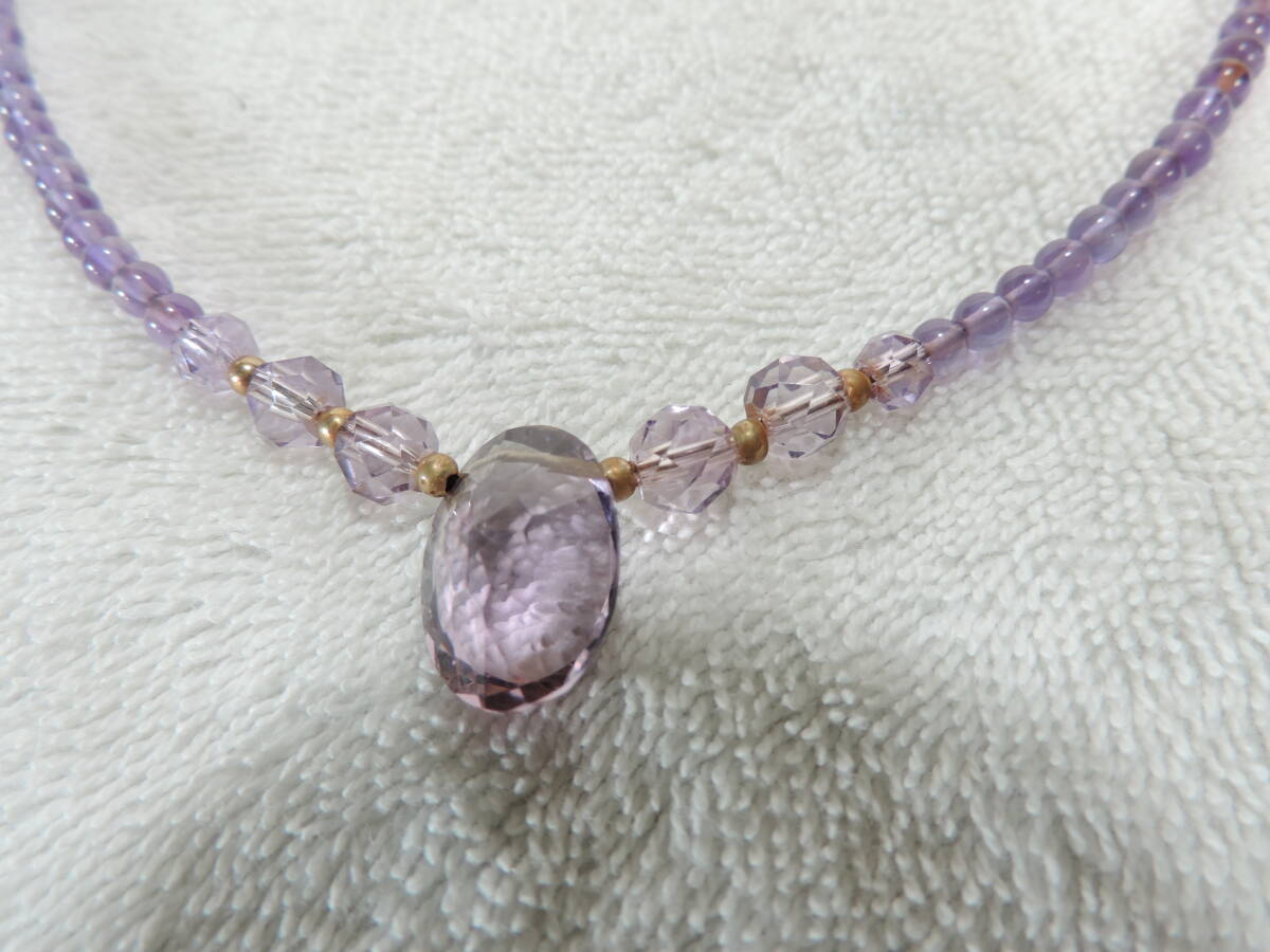 ■商品説明:未使用・美品・紫宝石・18K金無垢ネックレス・レディース・K18留め金具・長さ:約43cm