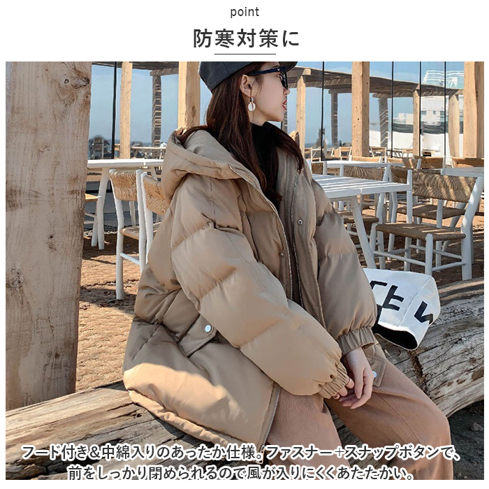 | 商品説明 | ・・ぽわんとシルエットがトレンド☆「中綿入り防寒ジャケット」が登場。 ・【ぽわんとシルエット】 ・裾にかけてぽわんと広がるシルエットが今っぽい♪パンツにもスカートにも合わせやすく、コーデにプラスするだけでトレンド感UP☆ ・【防寒対策に】 ・フード付き&中綿入りのあったか仕様。ファスナー+スナップボタンで、前をしっかり閉められるので風が入りにくくあたたかい。 ・【大きめのポケット】 ・両サイドに大きめのポケットを搭載。スマホや小物をサッと入れられるので便利。スナップボタン付きで安心。 ・【軽量設計】 ・嬉しい軽量設計。ふんわり軽い着心地なので、1日中着用してもストレスフリー。 ・【シンプルデザイン】 ・無地で大人っぽいシンプルデザイン。シーンを選ばすに使用できるので、オフィスからデイリーまで幅広く着用OK。 |
