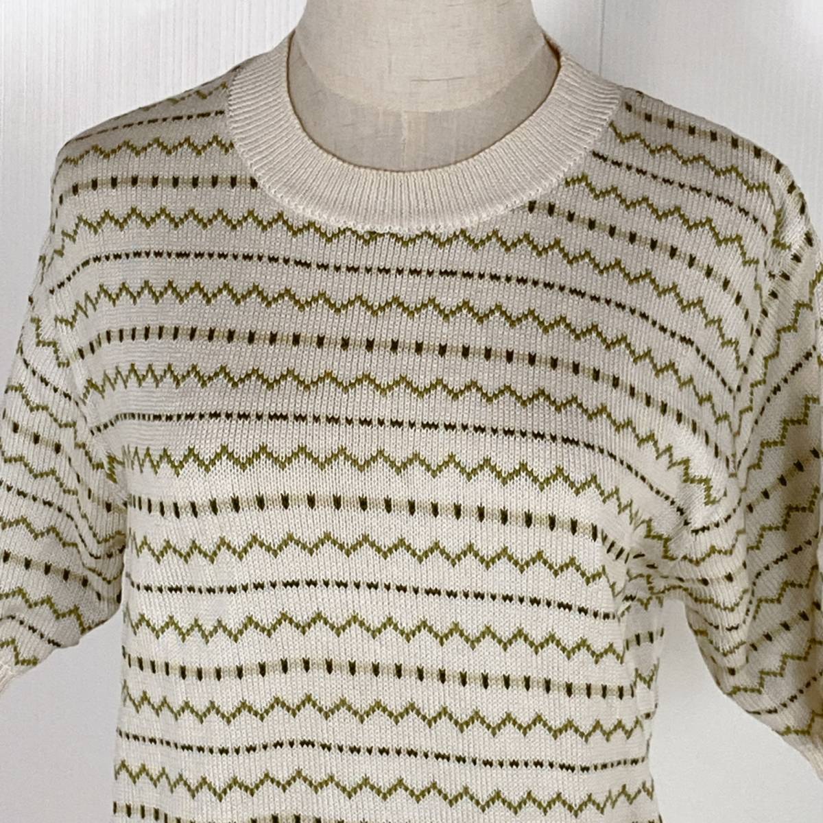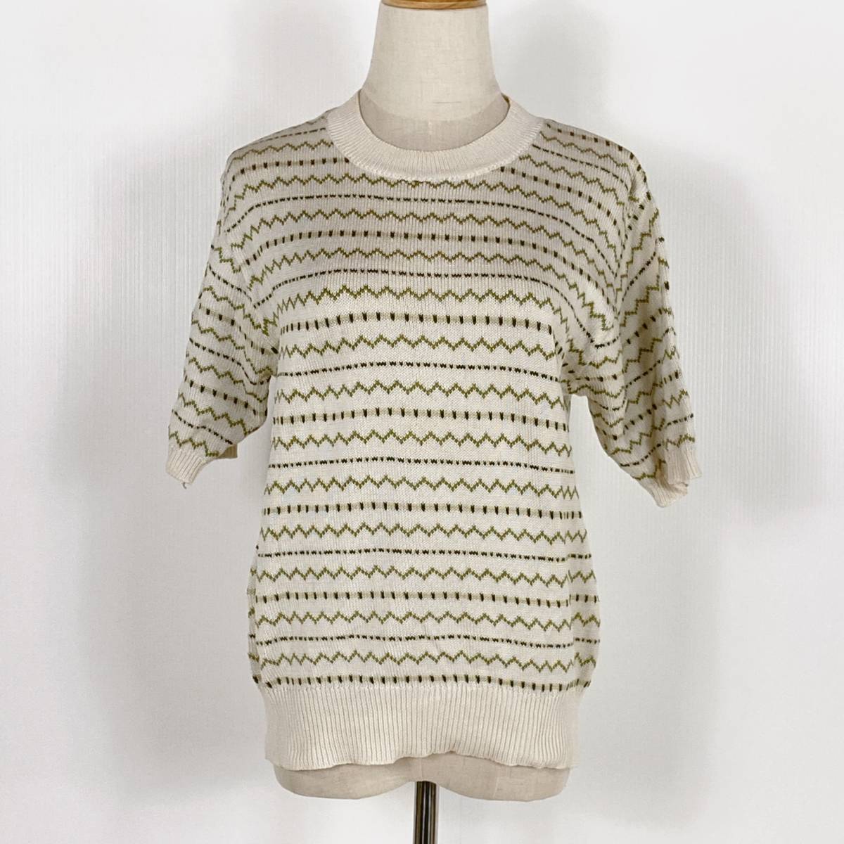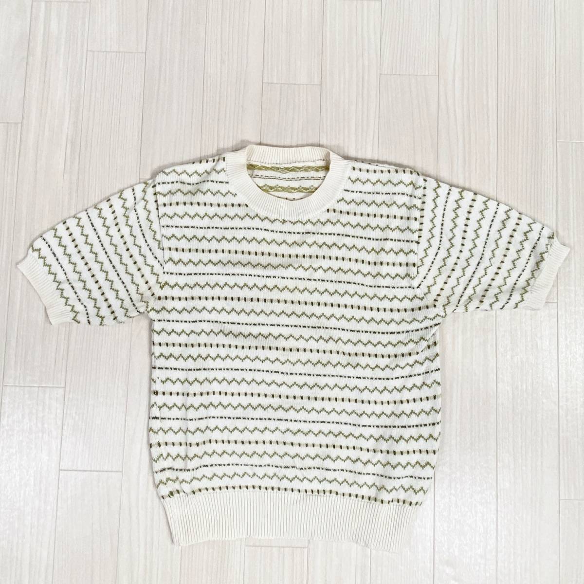 YZ1066 harmonica ハーモニカ レディース コットン100% 総柄 サマーニット 半袖 ボーダー 万能 お洒落 カジュアルコーデ かわいい USED