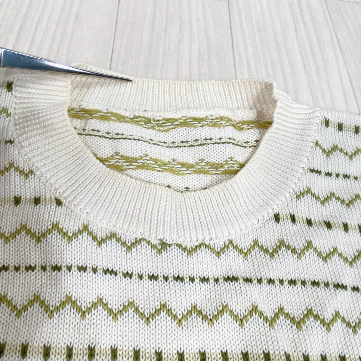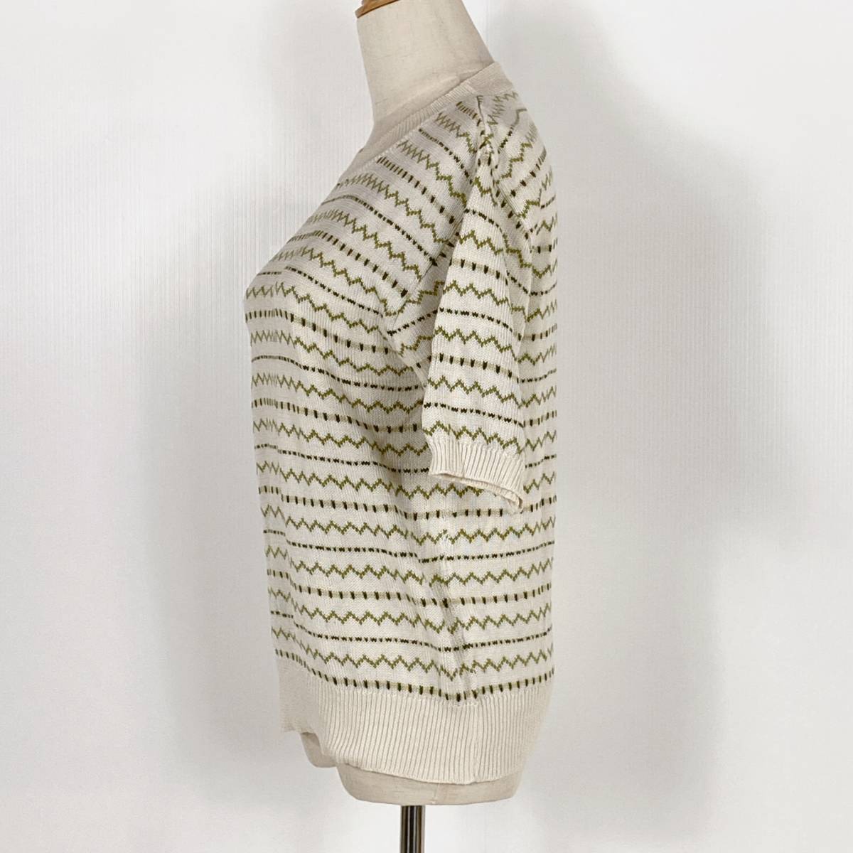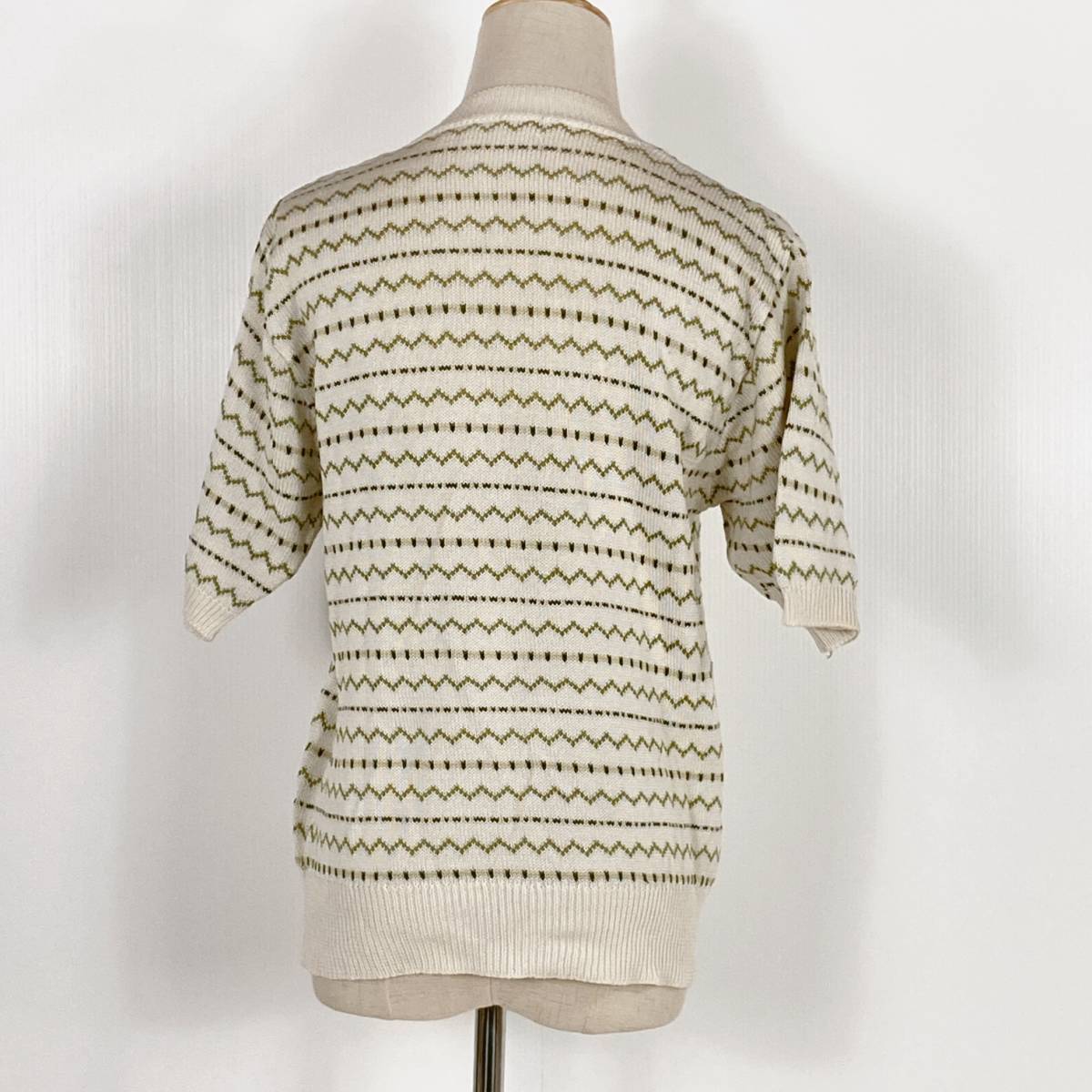 YZ1066 harmonica ハーモニカ レディース コットン100% 総柄 サマーニット 半袖 ボーダー 万能 お洒落 カジュアルコーデ かわいい USED