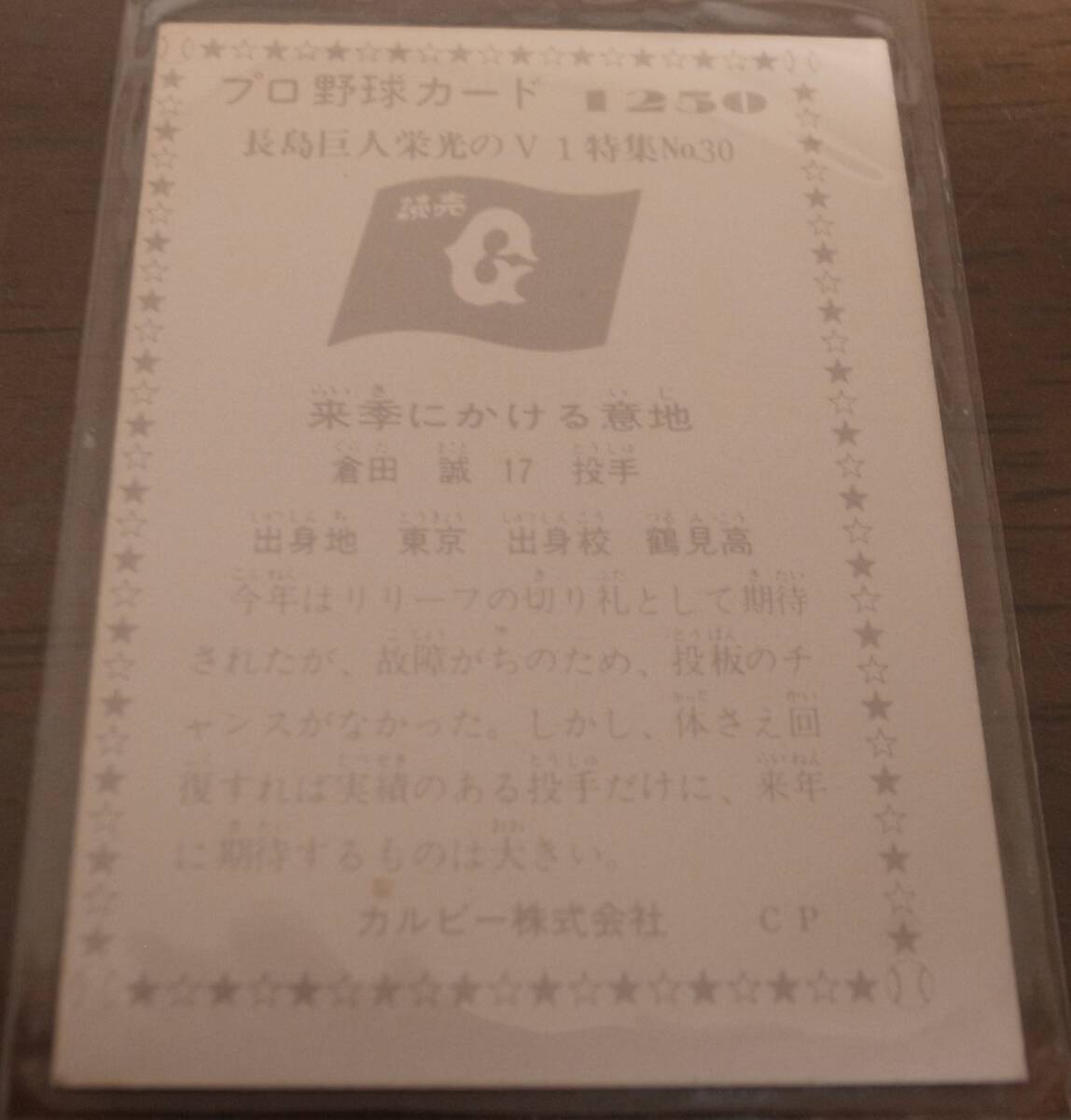 ■カルビープロ野球カード1976年/No1250/長島巨人栄光のV1特集No30/倉田誠/巨人 | ||