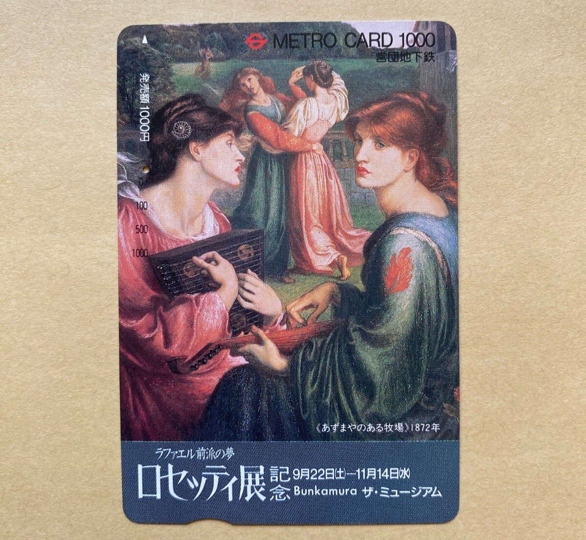 【使用済】 絵画メトロカード 営団地下鉄 東京メトロ 《あずまやのある牧場》ロセッティ展記念 -ラファエル前派の夢-