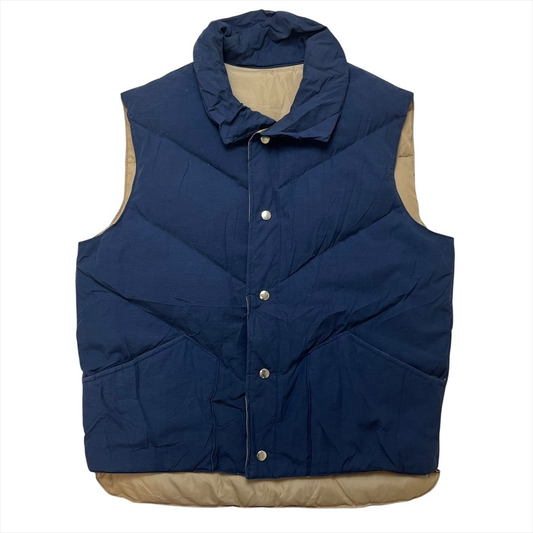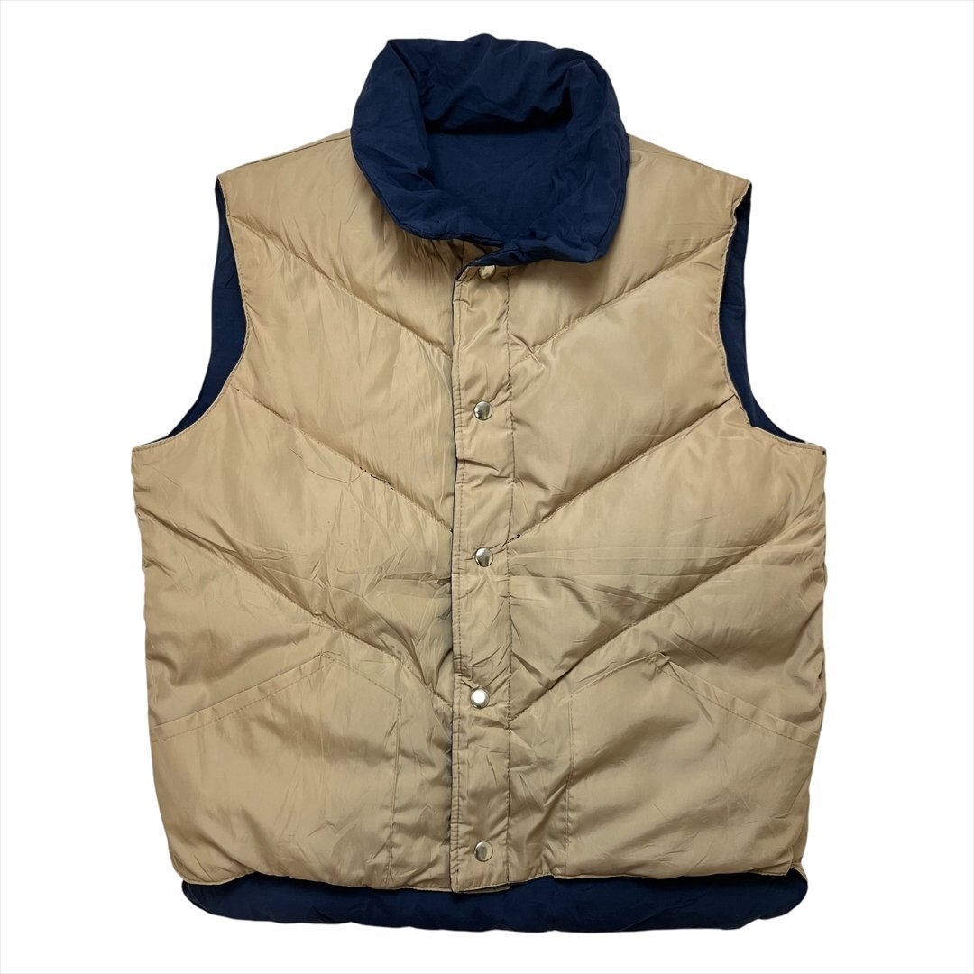 中綿ベスト ベスト ネイビー 古着 メンズ L アウトドア リバーシブル 裏面ベージュ アメカジ