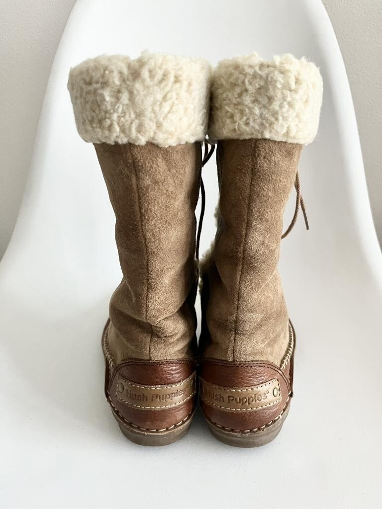 【送料込】Hush Puppies ハッシュパピー ブーツ 22.5cm ヒール2 キャメル×アイボリー カジュアル 可愛い おしゃれ 6446813