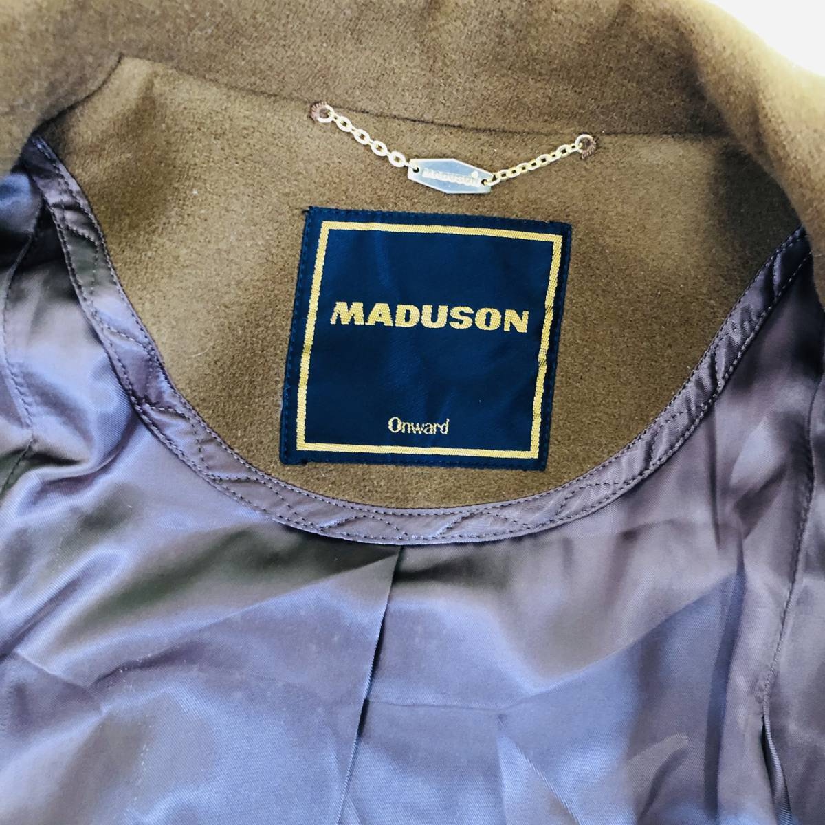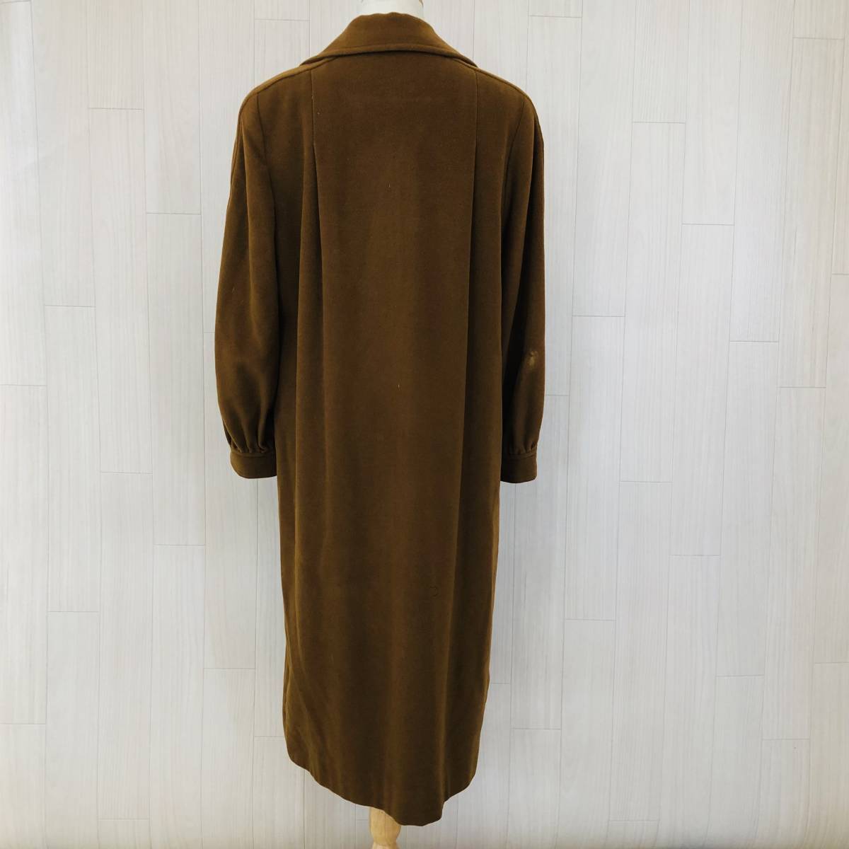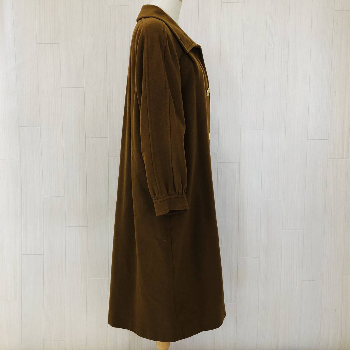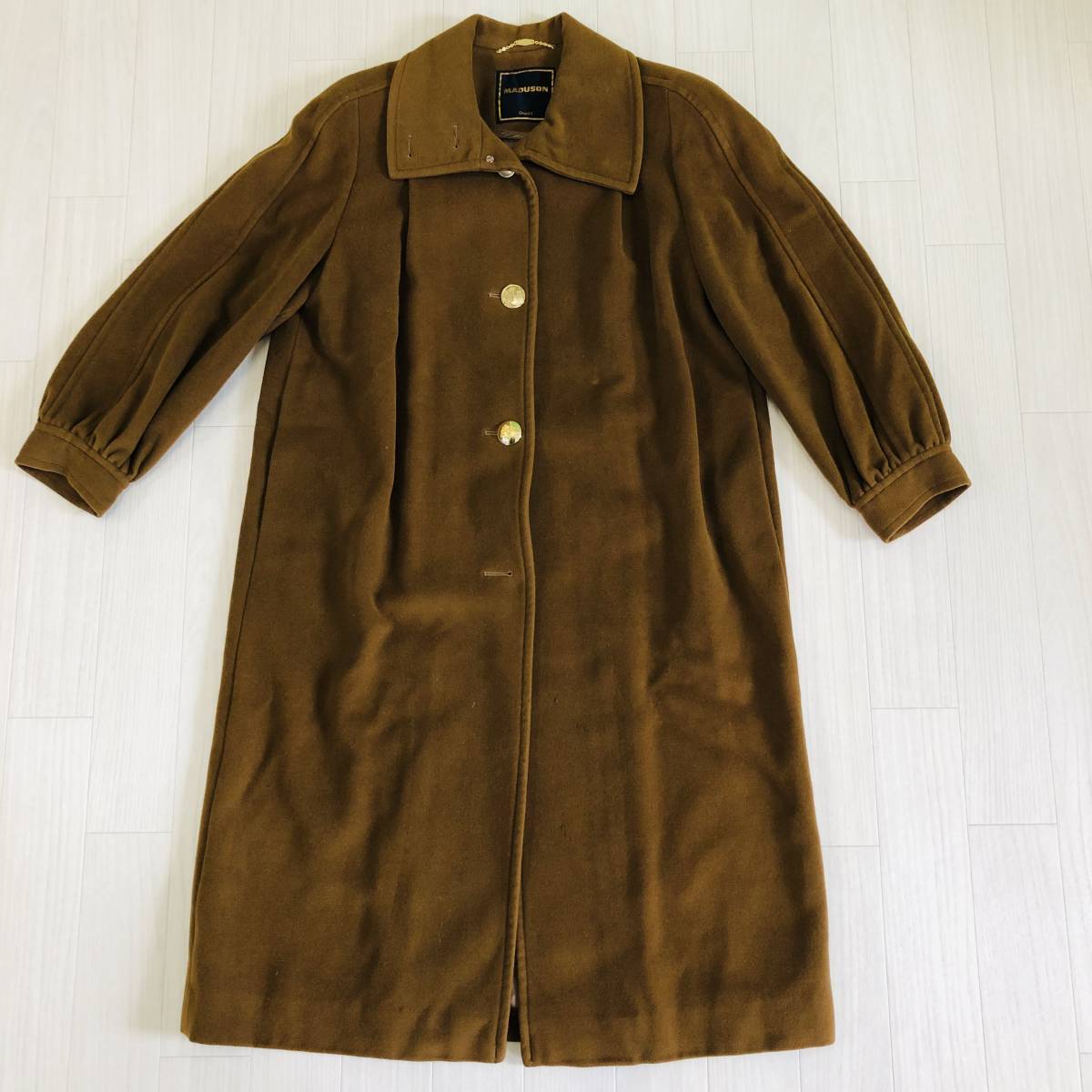 YAS0078 カシミヤ MADUSON Onward マディソン オンワード レディース アウター ロングコート シャンクボタン ブラウン茶 無地 毛100% 高級