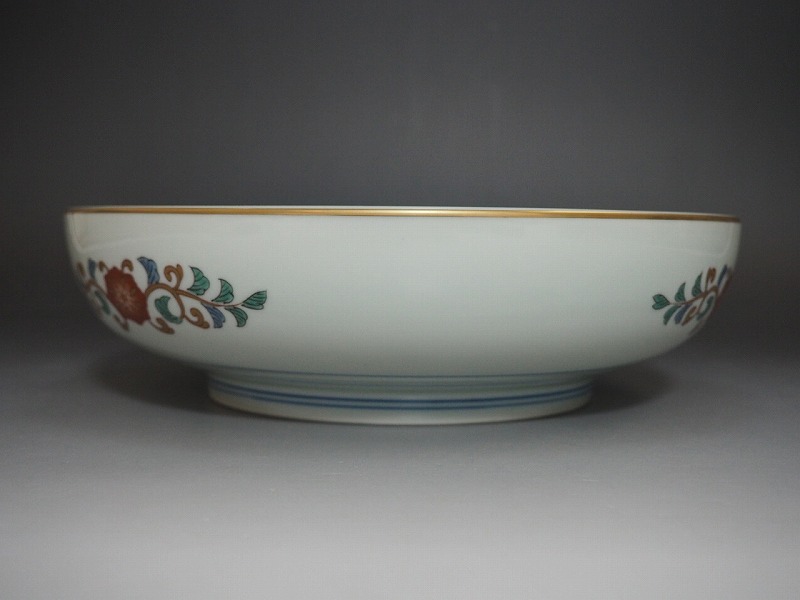 | B1370 有田焼 弥左エ門 作 染錦 鉢 共箱付 ☆ 和食器 会席道具 懐石道具 茶懐石 茶事 大鉢 盛鉢 盛器 作家物 在銘 陶印 美品 良品 無傷 | ||