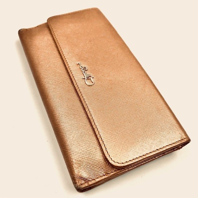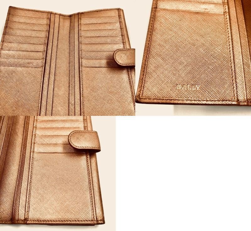 バリー BALLY 長財布 二つ折り財布 札入れ レザー レディース ベージュオレンジ メタリック