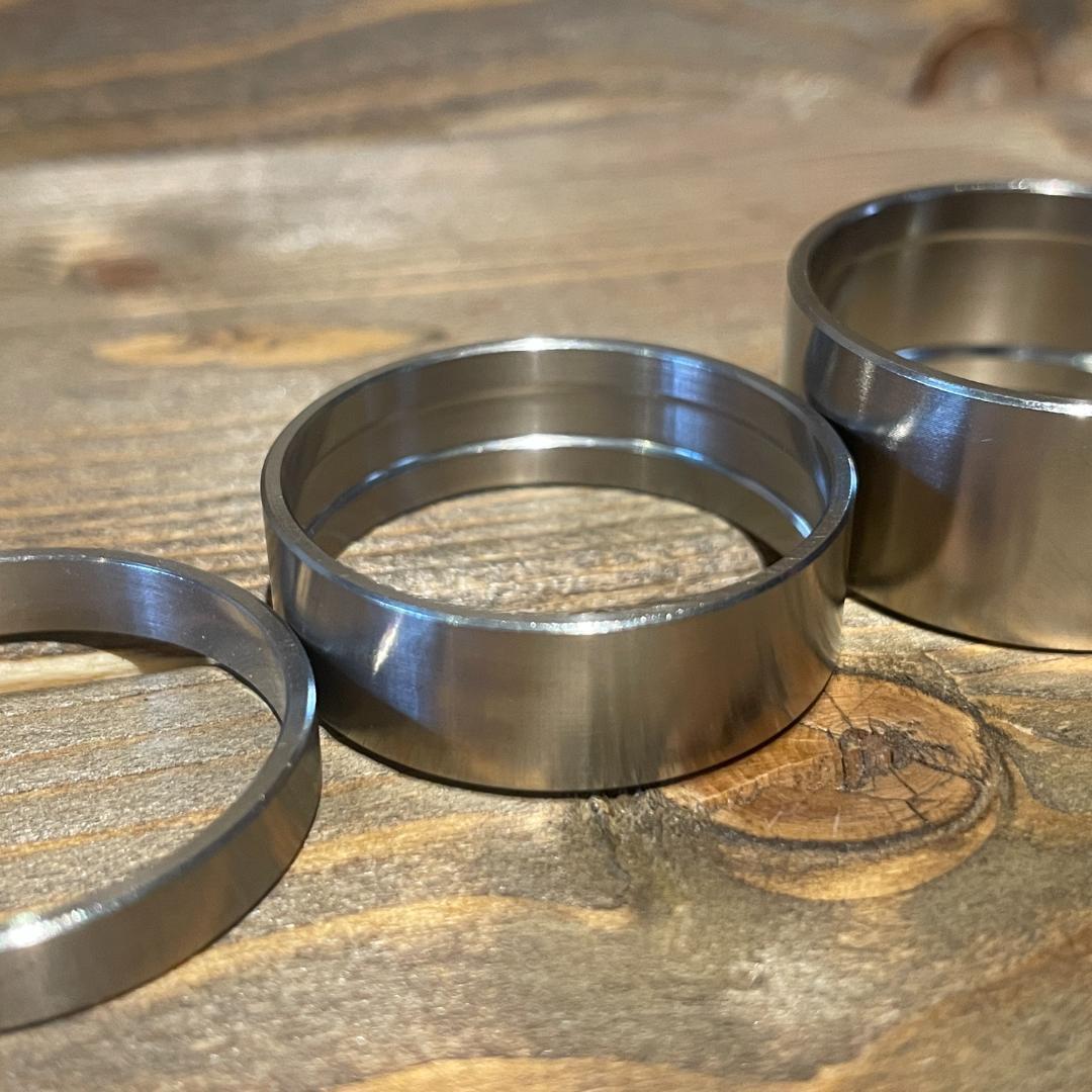オーバーサイズ(1-1/8")用チタン合金のヘッドスペーサー ステムスペーサーの新品の出品になります。スリムな形状のクロモリアヘッドステムと一緒にご使用していただくと段差のない綺麗なヘッド周りを実現できます!