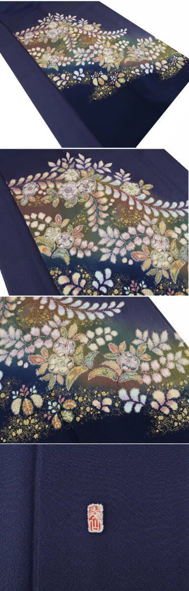 正絹 ●―――――――――――― コメント ――――――――――――― 【桐屋 翠山工房】特選本手加工辻が花絞り訪問着 金彩「やまと新はじく加工」躾糸付未着用 雑誌「美しいキモノ」などの専門誌でも有名な、 絞り工芸の大家、新潟県十日町『桐屋 翠山工房』謹製、正絹訪問着のご紹介です。 辻が花の魅力は、何といっても、絞り染めによって表現されるその豪華かつ繊細な絵模様。 絞りと友禅技法が持つ自由な表現と複雑な絵柄表現をあわせたものが、まさに辻が花の魅力と言えます。 しっとりと落ち着いた色彩だけでなく、柄行きからも、 素材からも、立体感からも、 そっとかもし出される落ち着いた女性らしさ。 素敵な大人の装いを演出してくれることでしょう。 辻が花はフォーマルな場に最適で、式典や観劇、パーティーでお召しいただく着物としてもぴったりです。 お目に留まりましたら、是非ご検討下さいませ。 躾糸付未着用の綺麗な美品のお品でございます。 現物は画像以上に色合い・生地共に素晴らしいものですので、この機会に是非ともどうぞ! 格安でお安く出品致します。即決は送料無料となっております。是非この機会にいかがでしょうか。 |