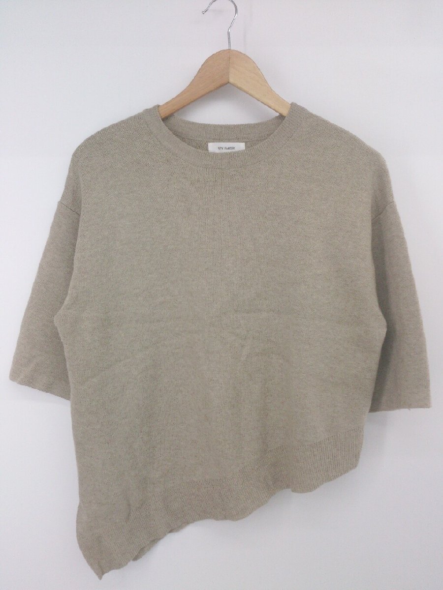 ◇ STYLEMIXER スタイルミキサー クルーネック 大人女子 アシメ 半袖 ニット セーター サイズS ベージュ レディース P