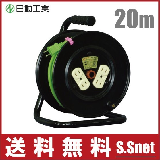 日動工業 電工ドラム コードリール 20m DY-20 電気コードリール 延長コード 100V 黒 コンパクト 小型