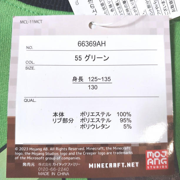【新品未使用】マインクラフト パジャマ上下 130 緑/黒 MINECRAFT 裏フリース かわいい となります。