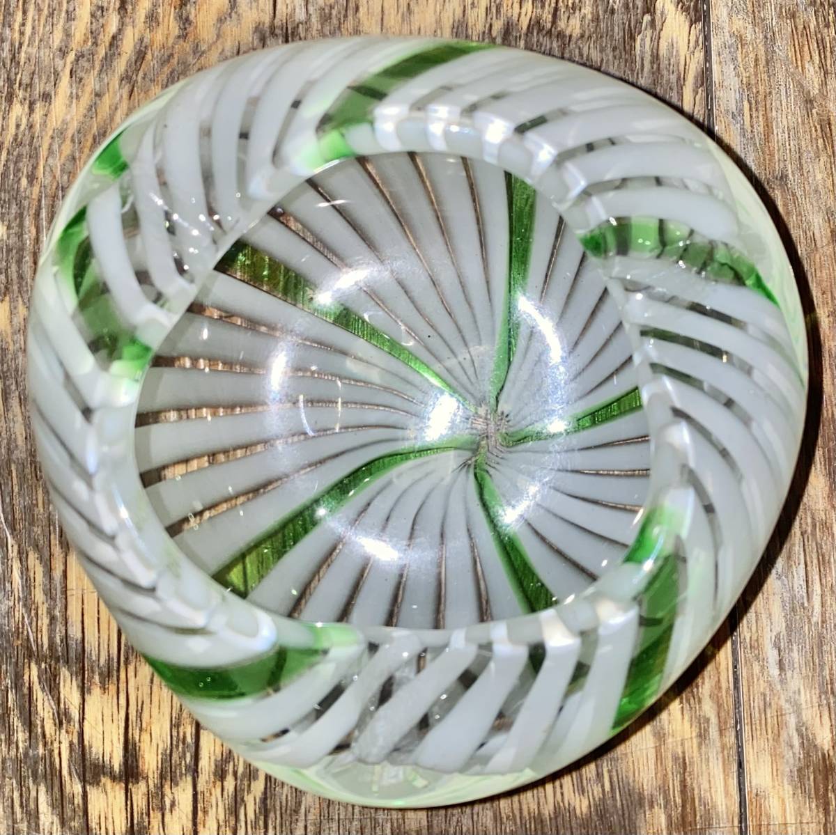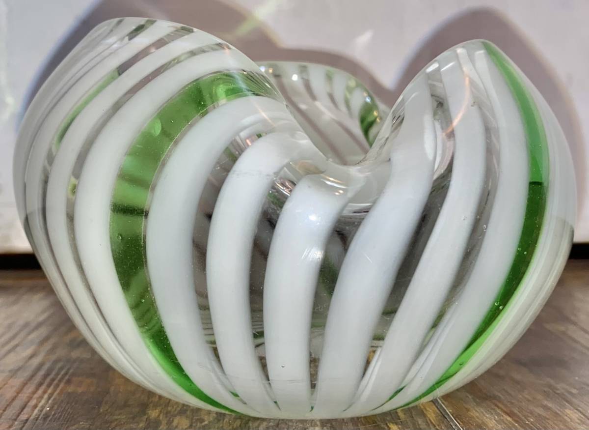 【No.384】昭和レトロ マーブル ガラス製 灰皿 グリーン ホワイト 緑 白 ヴィンテージ 中古品
