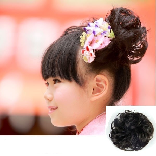 送料無料 2個セット シュシュ 黒髪 黒色 付け毛 女性 子供 七五三 no.731 E