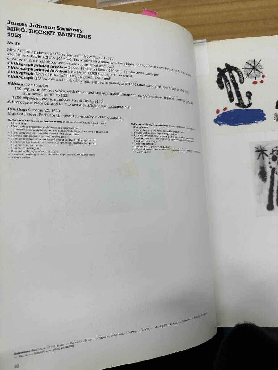 NYのピエールマティスギャラリーでの個展開催時に制作されたブックワークからの 一枚でレゾネに掲載されているオリジナルリトグラフです。1250部限定。ムルロー刷り。 状態は経年変化は見られますが良いと思います。 写真にてご確認下さい。