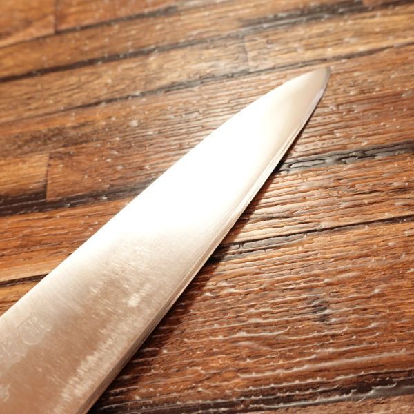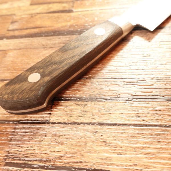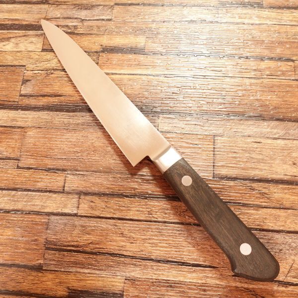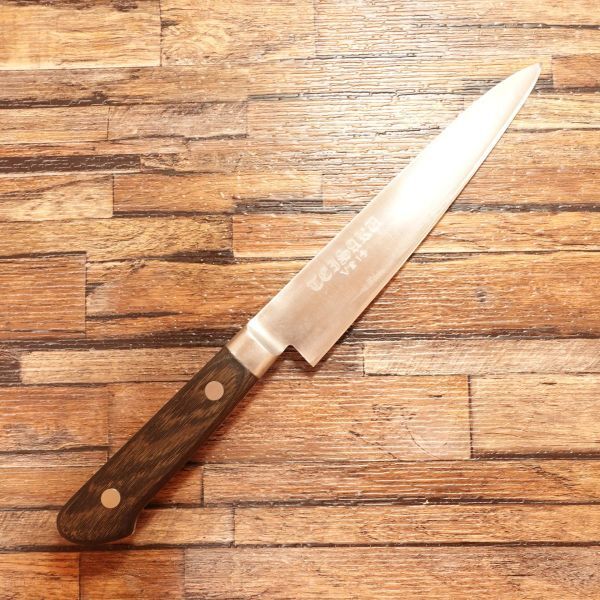 この包丁は**V金1号高級ステンレス(VG-1)**製で、耐久性があり切れ味が良いのが特徴です。小さめのサイズなので、大きめのペティナイフやユーティリティナイフとしてもお使いいただけます。