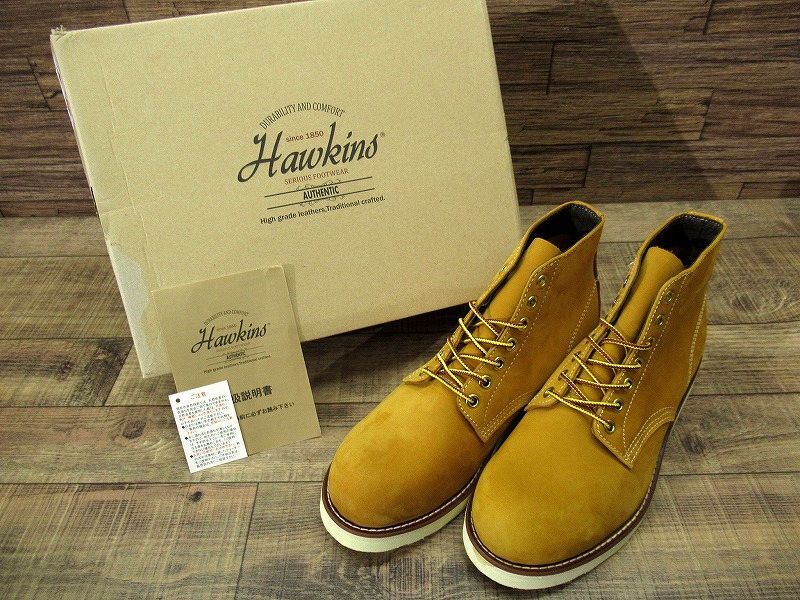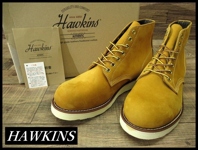 送無 新品 未使用 HAWKINS ホーキンス HL40062 天然皮革 ヌバック スエード レザー 6インチ プレーントゥ ワーク ブーツ ウィート 25.5 ⑤